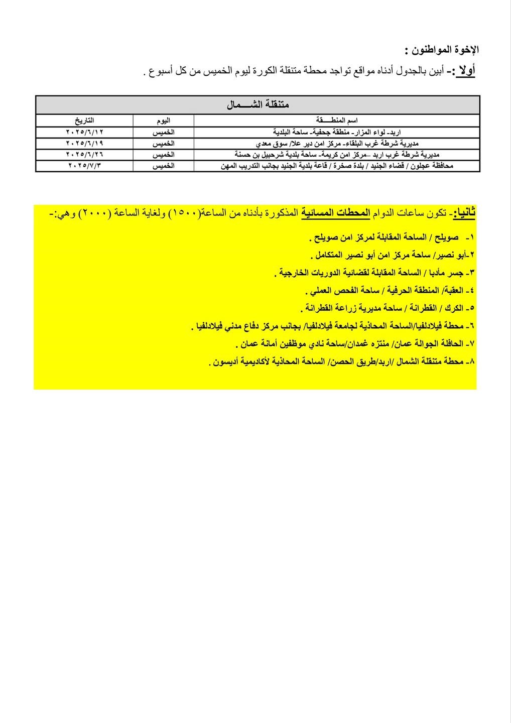 ويأتي هذا التوسع في الخدمات لتلبية احتياجات المواطنين وتوفير الوقت والجهد عليهم، بما يعكس حرص مديرية الأمن العام على تقديم أفضل الخدمات الممكنة وتحقيق رضا متلقي الخدمة.