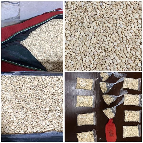 فيما وردت في القضية الثانية معلومات حول قيام شخصين بتجهيز كميات من الحبوب المخدرة ووضعها بمخبأ سري بإحدى مركبات الشحن تمهيدا لتهريبها لدولة مجاورة ، حيث جرى من خلال التحقيقات تحديد هوية الشخصين ومكان وموعد نقلهما للحبوب المخدرة في محافظة الزرقاء وجرت مداهمتهما أثناء توجههما للمعبر الحدودي وأُلقي القبض عليهما وضبط داخل مخبأ سري 200 ألف حبة مخدرة .