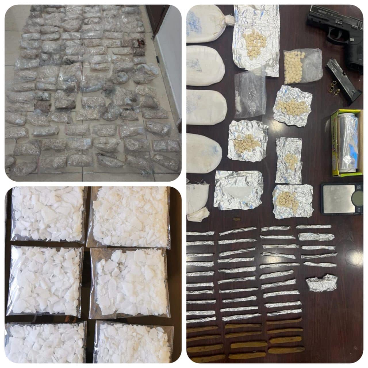 124 ألف حبة مخدرة ضبطت في إحدى القضايا و 9 كغم كريستال في قضية أخرى وإلقاء القبض على مطلوب خطر مسلح في قضية ثالثة