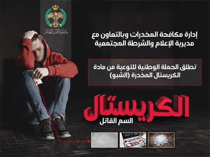 أطلقت إدارة مكافحة المخدرات وبالتعاون والتنسيق مع مديرية الإعلام والشرطية المجتمعية حملة توعوية ضد مادة الكريستال المخدرة والقاتلة لنشر الوعي المجتمعي حولها وتعريف المجتمع بأضرارها الخطرة والقاتلة، وتحفيزهم للمساهمة في مواجهتها ومنع الشباب من تعاطيها والإبلاغ عن أي نشاط يرتبط بها.