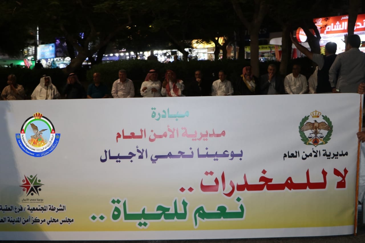 أطلقت إدارة مكافحة المخدرات يوماً توعوياً في محافظة العقبة ، بمشاركة كل من منطقة العقبة الاقتصادية الخاصة ومديرية أوقاف العقبة و المجلس الأمني بالمحافظة و مجلس المحافظة " اللامركزية " و مؤسسات المجتمع المدني و بالتنسيق مع الشرطة المجتمعية .