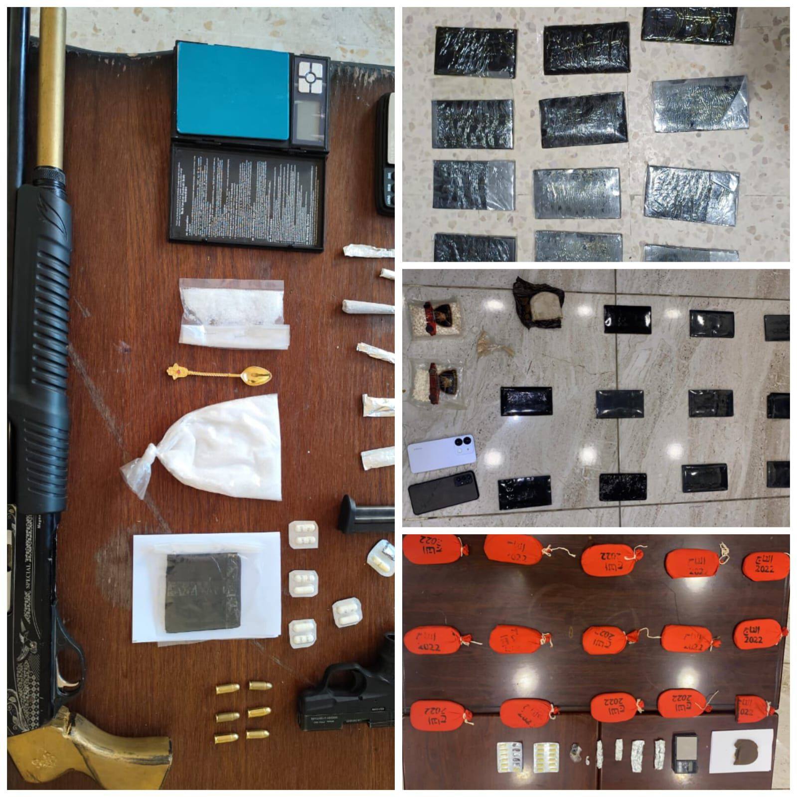 وفي البادية الشمالية أُلقي القبض على مطلوبين اثنين بقضايا مخدرات من المصنفين بالخطرين بعد مداهمتهما في قضيتين منفصلتين وضبط بحوزتهما كمّيات من المواد المخدرة، وفي محافظة إربد دوهم مروج للمخدرات وضبط بحوزته سلاح ناري وكمية من المواد المخدرة .