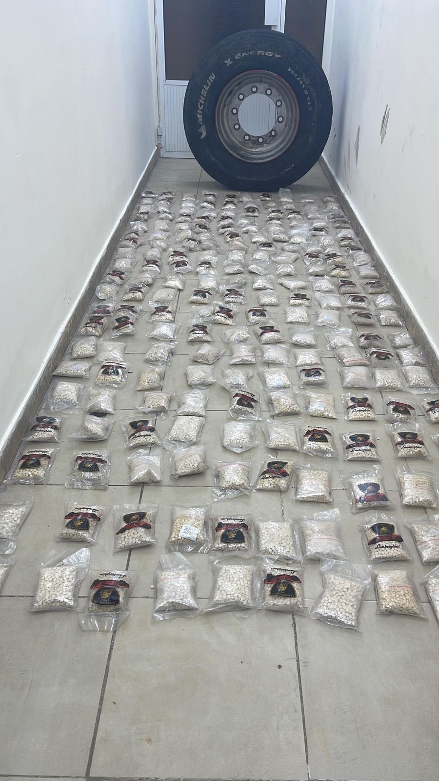 وفي التفاصيل وردت معلومات حول قيام أحد الأشخاص من جنسية عربية وبالتنسيق مع أشخاص داخل المملكة لإدخال كمّيات كبيرة من الحبوب المخدرة بواسطة إحدى مركبات الشحن، حيث جرت متابعة تلك المعلومات وجرى تحديد المركبة والأشخاص الذين سيقومون باستلام المخدرات داخل الأردن وفور وصول مركبة الشحن جرى ضبطها وبتفتيشها عثر داخل إطار على 200 ألف حبّة مخدرة، وبالتزامن مع ذلك جرت مداهمة وإلقاء القبض على الشخصين مستلمي المخدرات بعد تحديد مكان وجودهما .