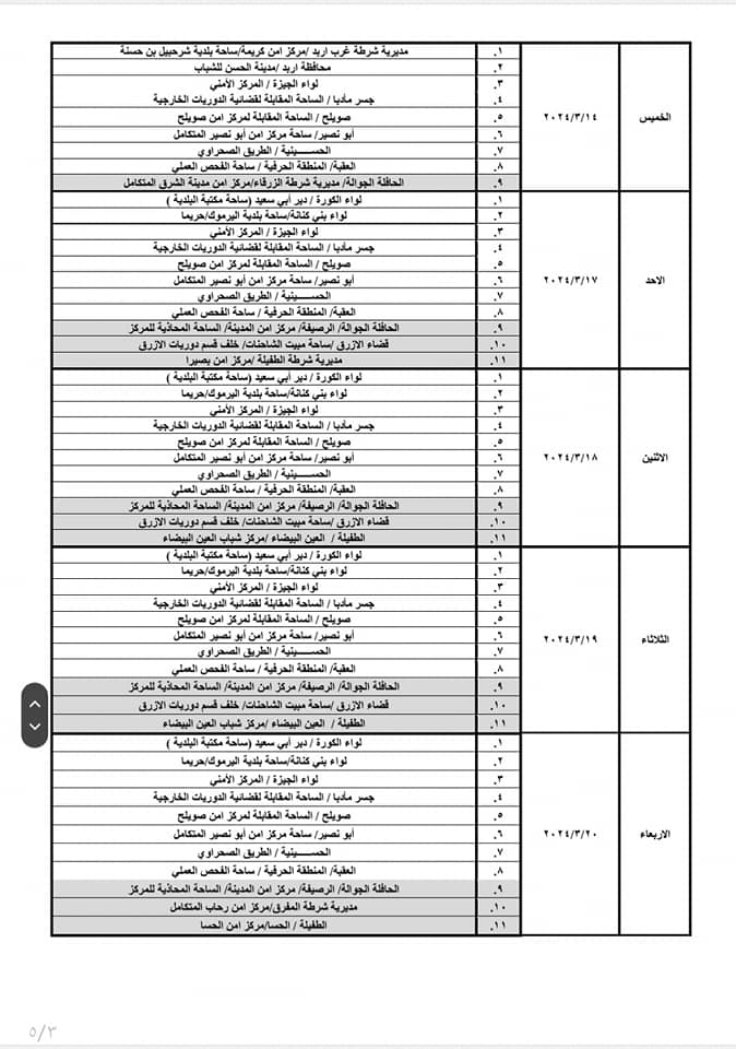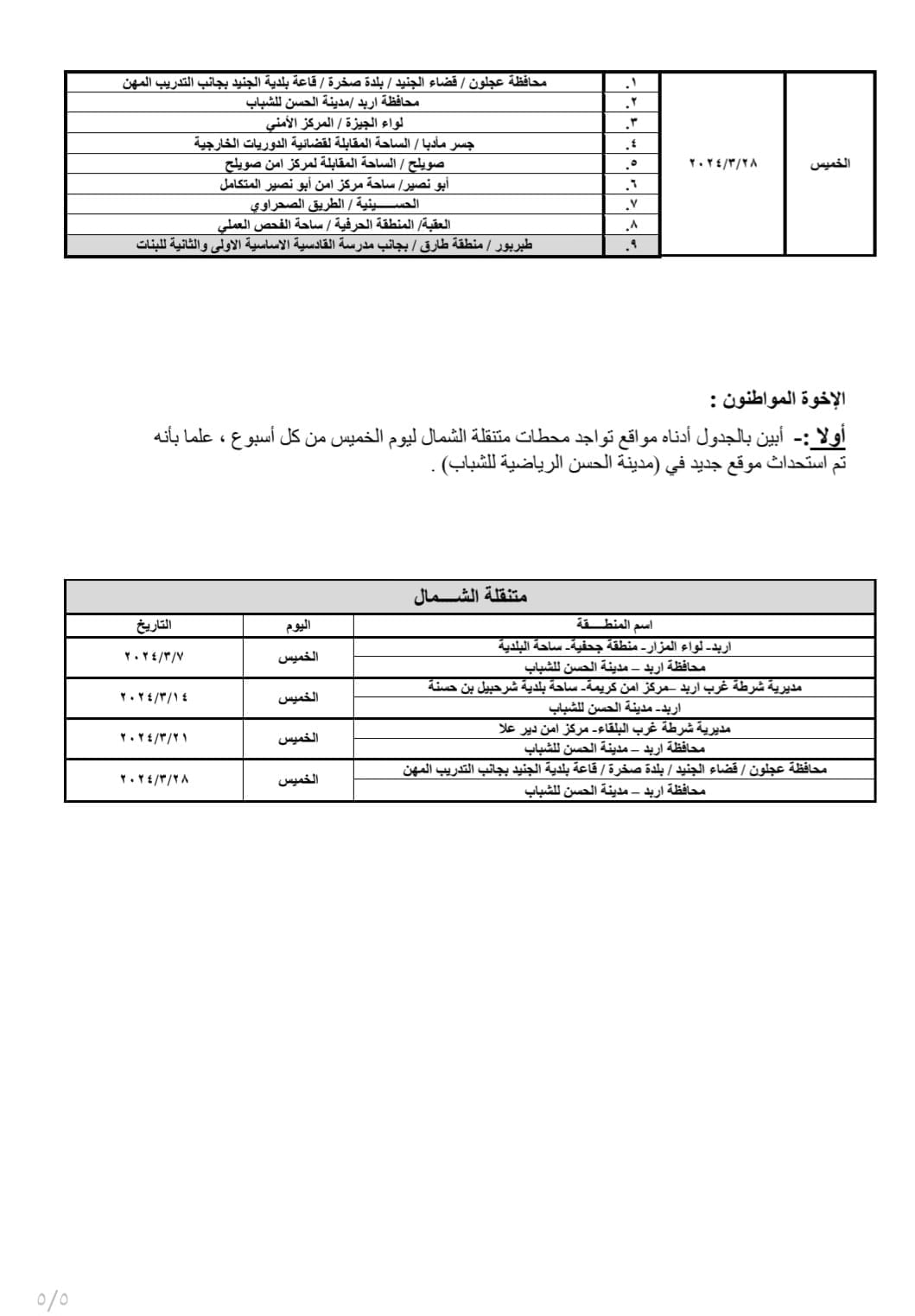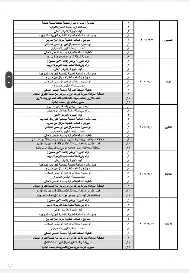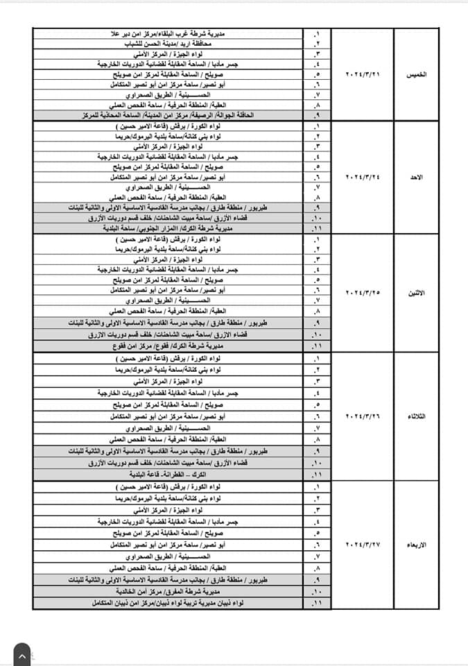 إدارة ترخيص السواقين والمركبات تعلن عن مواعيد العمل بجولات الترخيص المتنقل ضمن المبادرة الابتكارية ( بنوصلك ) خلال شهر أذار لعام 2024 في عدد من مناطق المملكة، حيث ستكون ساعات الدوام للترخيص المتنقل من يوم الأحد ولغاية يوم الأربعاء من الساعة 8:00 صباحاً وحتى الساعة 2:00 ظهراً، ويوم الخميس من الساعة 8:00 صباحاً ولغاية الساعة 1:00 ظهراً.