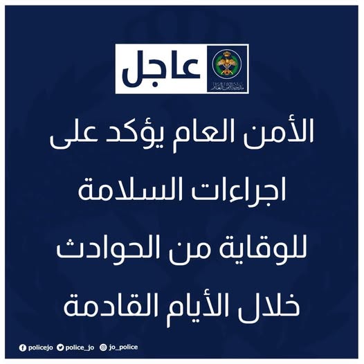 وأهابت مديرية الأمن العام بالجميع إلى التحلي بروح المسؤولية، والامتثال للتعليمات والإرشادات، مشيرة إلى أن بعض التصرفات الخاطئة في مواسم سابقة تسببت في خسائر مؤلمة في الأرواح والممتلكات، وأكدت في ختام بيانها أن كوادر الأمن العام ستواصل انتشارها الميداني، وتقديم الدعم والإسناد، لضمان موسم تنزه آمن وخال من الحوادث.