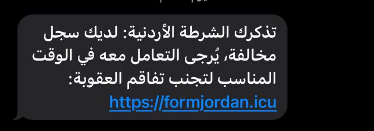 حذّر الناطق الإعلامي باسم مديرية الأمن العام المواطنين من رابط احتيالي يرد على هواتف المواطنين ومروّس باسم الشرطة الأردنية ويدعوهم للدخول للحصول على سجّل للمخالفات تجنّباً لتفاقمها.