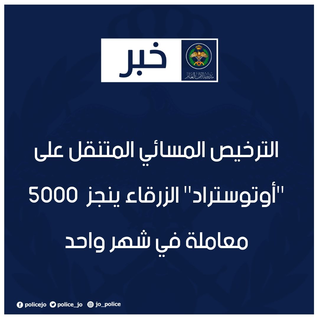 وفي هذا المجال، تمكنت محطة ترخيص أوتوستراد الزرقاء المسائي، والتي تم افتتاحها مؤخراً من إنجاز ما يقرب من 5000 معاملة خاصة بترخيص السائقين والمركبات، خلال الشهر الأول من انطلاق عملها، وفق إدارة ترخيص السواقين والمركبات في مديرية الأمن العام.