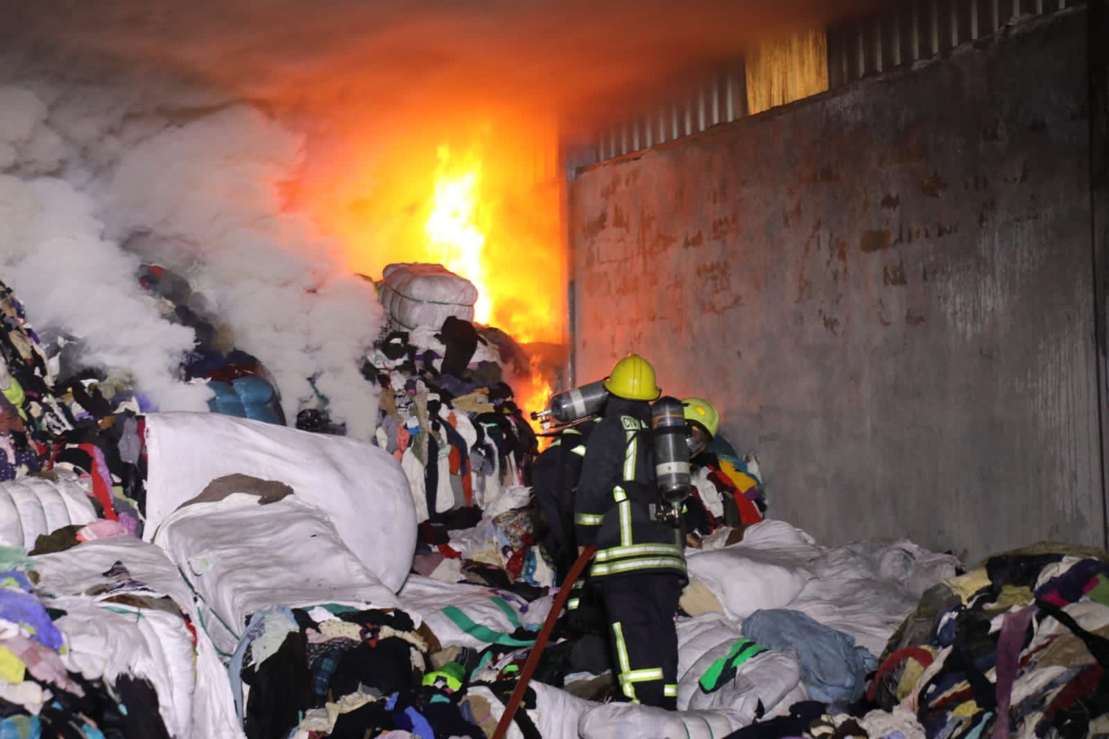 صرح الناطق الإعلامي في مديرية الامن العام بان الكوادر المتخصصة في مديرية دفاع مدني الزرقاء والشرطة تمكنت اليوم من إخماد حريق أتى على هنجر بمساحة (٦٠٠) م٢ تقريبا ؛ يحتوي على أقمشة وملابس مستعملة (باله ) بالمنطقة الحرة في محافظة الزرقاء.
