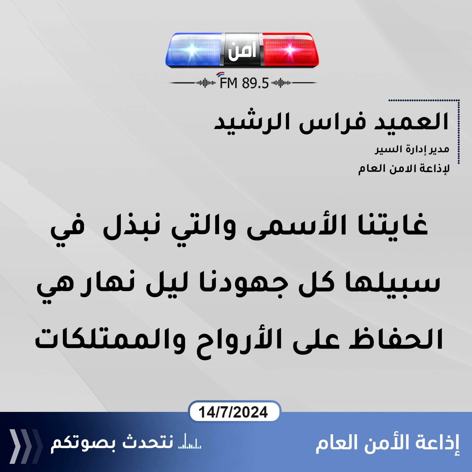 _ غايتنا الأسمى والتي نبذل في سبيلها كل جهودنا ليل نهار هي الحفاظ على الأرواح والممتلكات.