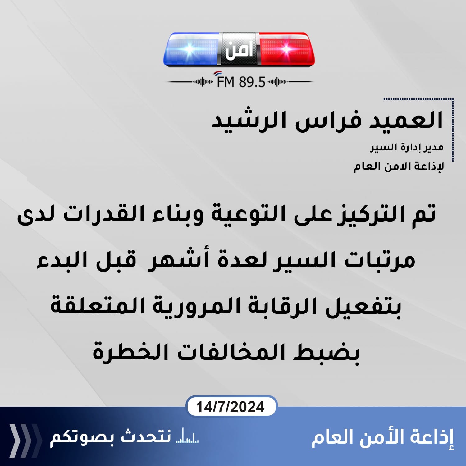 _ تم التركيز على التوعية وبناء القدرات لدى مرتبات السير لعدة أشهر قبل البدء بتفعيل الرقابة المرورية المتعلقة بضبط المخالفات الخطرة