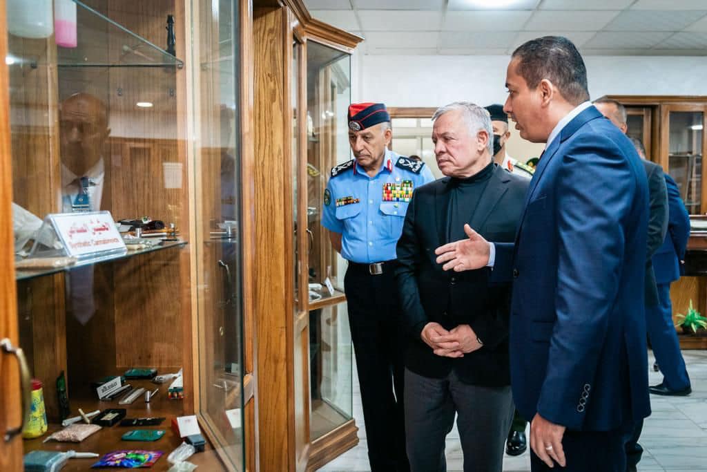 وجال جلالة الملك في نهاية الزيارة في متحف الإدارة، واطلع على ما يتضمّنه من نشرات توعوية وعيّنات من المواد المخدرة التي ضُبطت من قبل الجهات المختصّة وطرق إخفائها وإحباطها