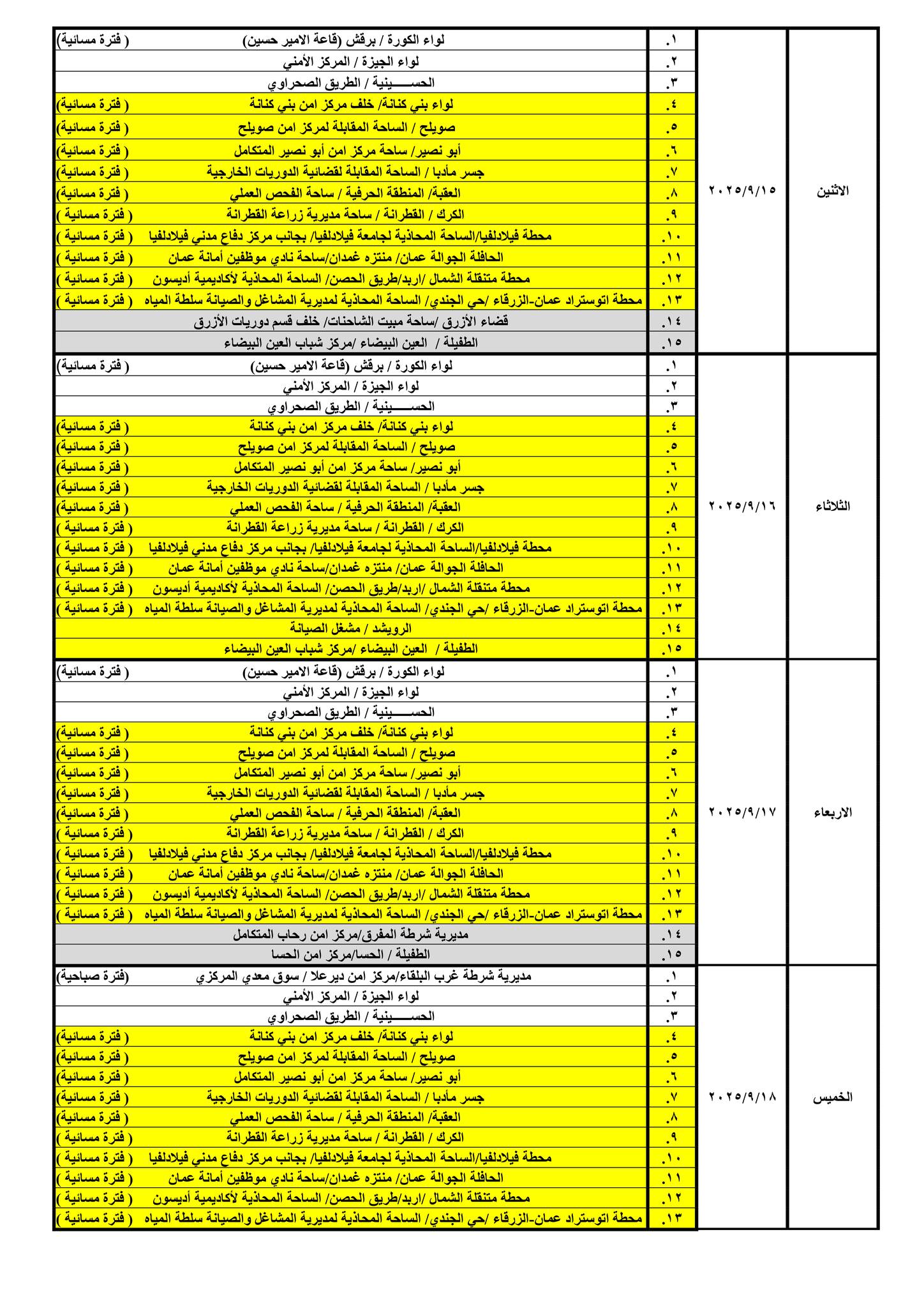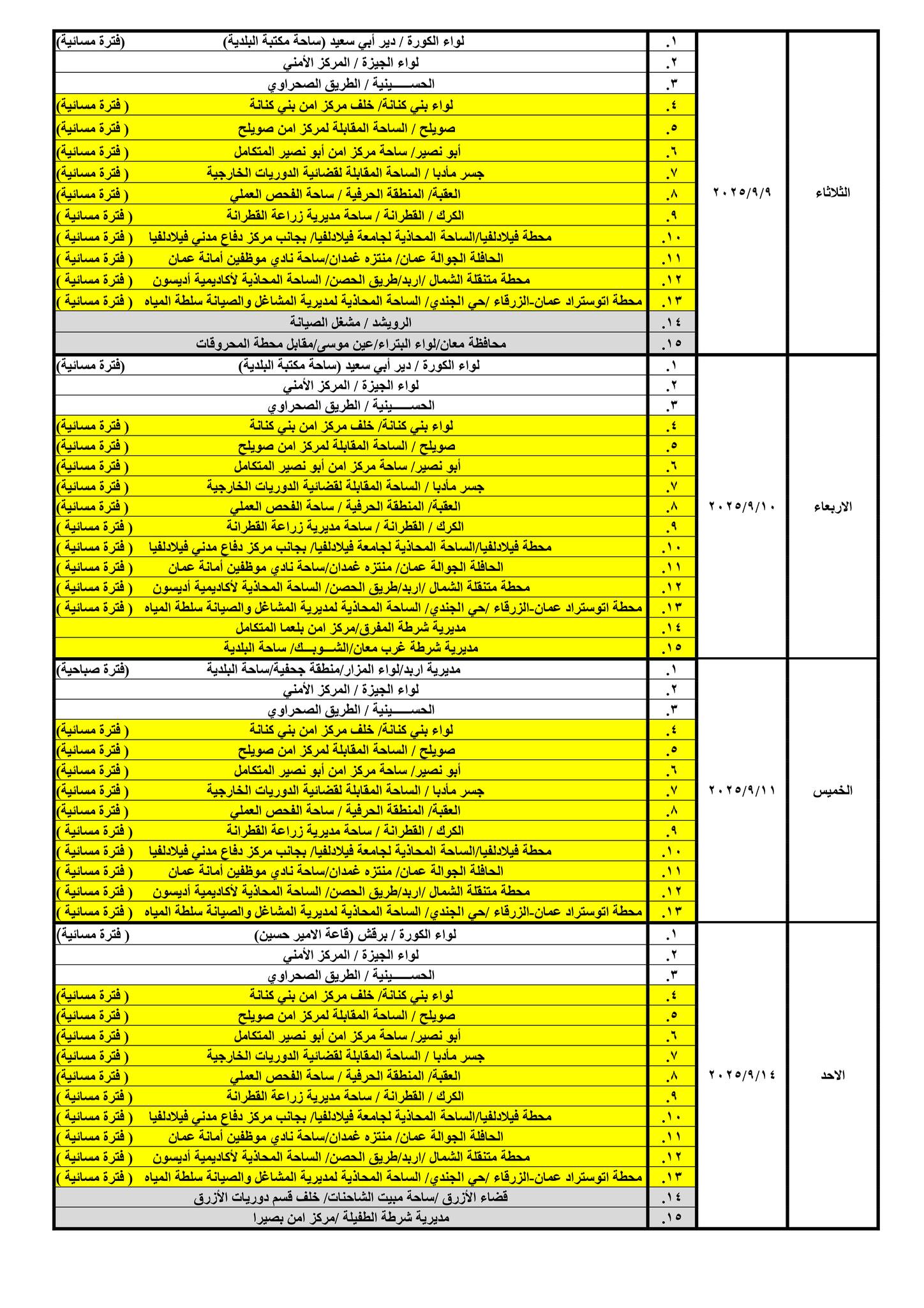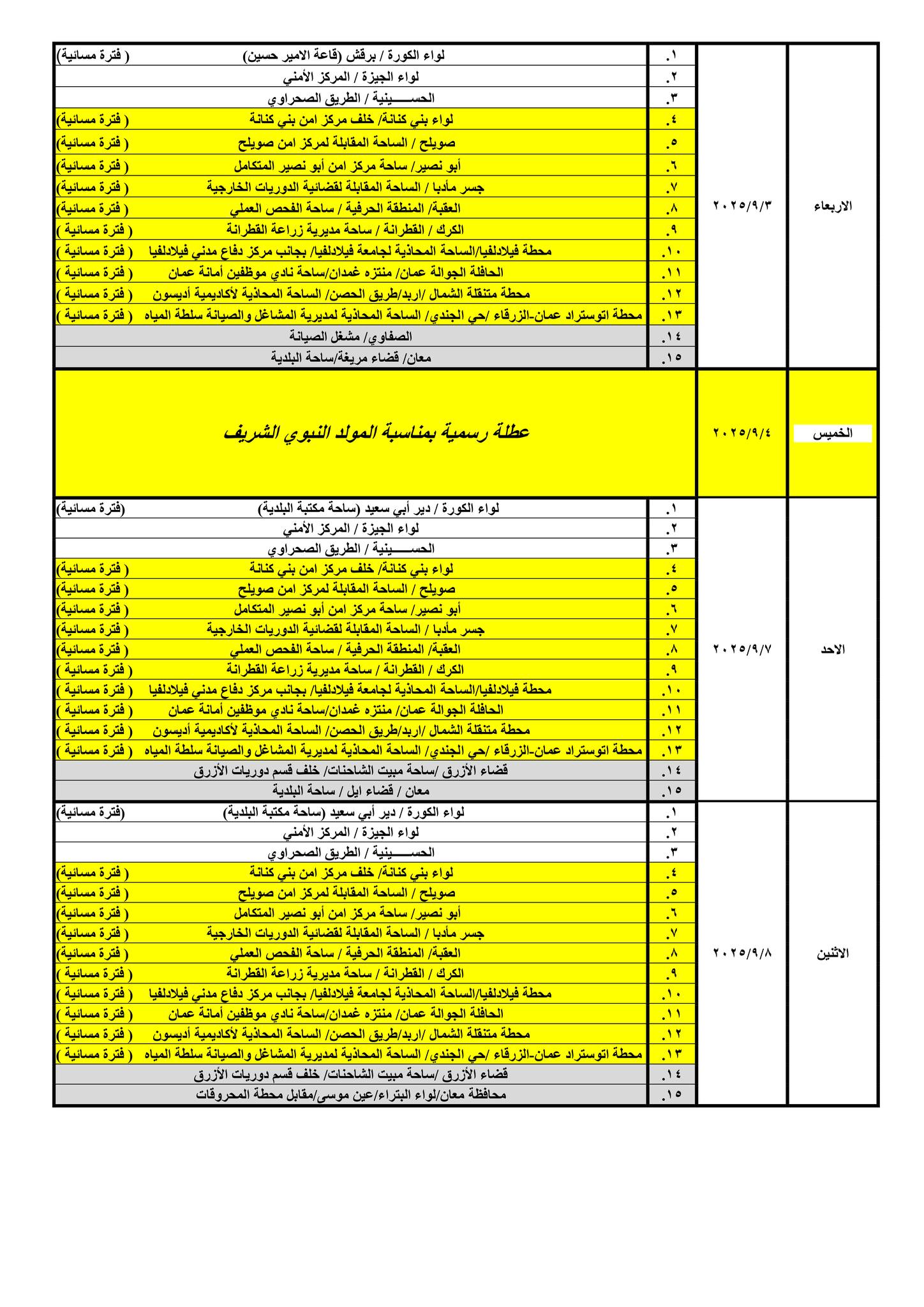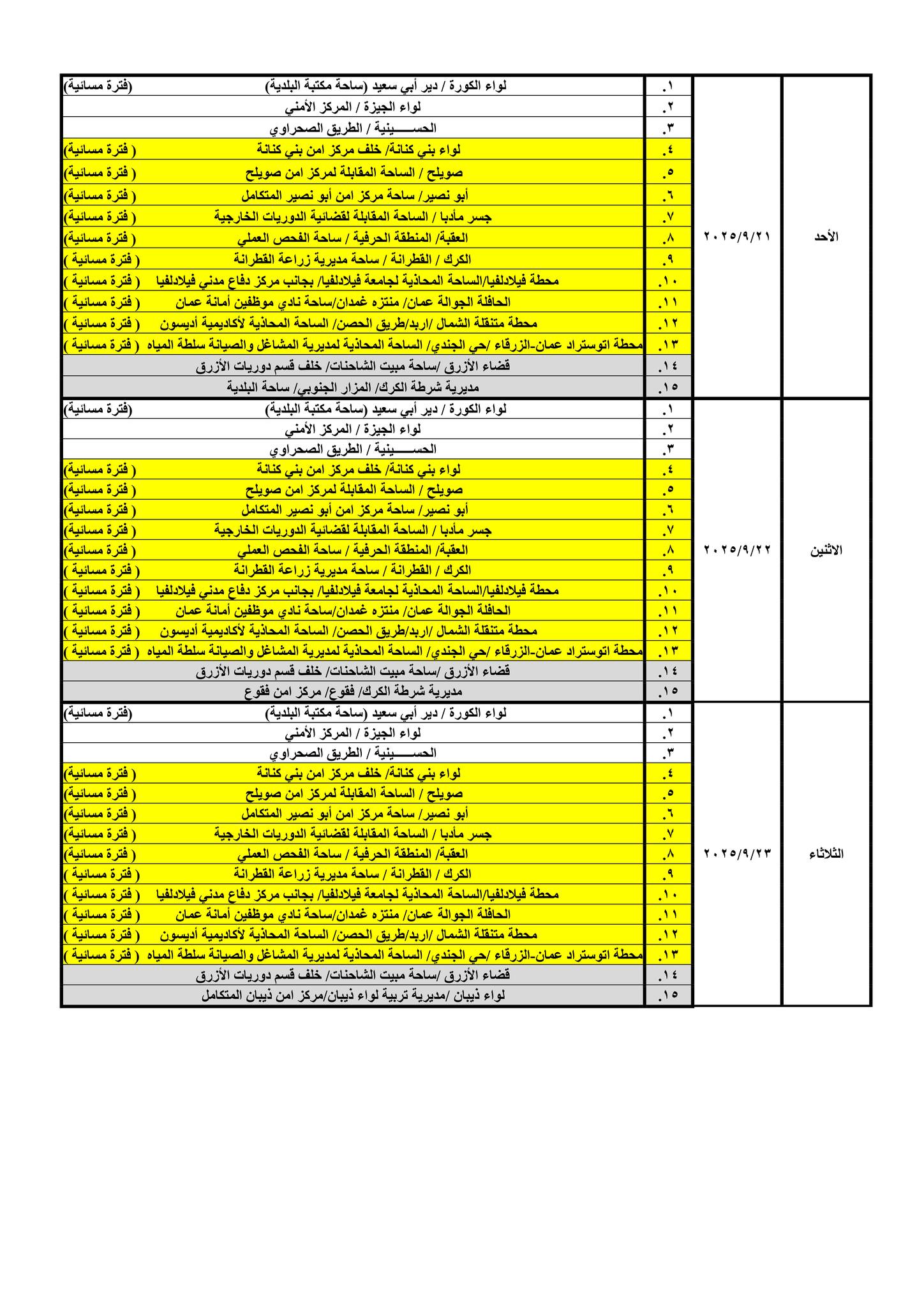 9- محطة اتوستراد عمان-الزرقاء /حي الجندي/ الساحة المحاذية لمديرية المشاغل والصيانة سلطة المياه.