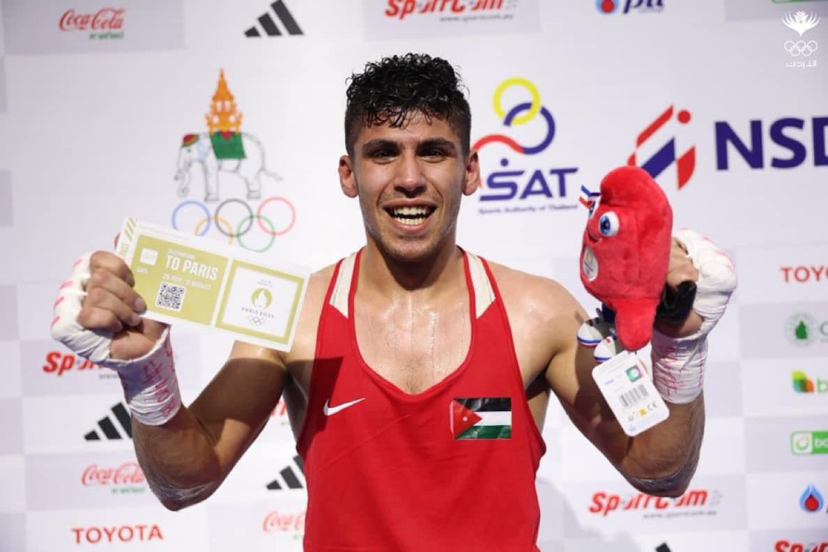 ظفر لاعب المنتخب الوطني الأردني للملاكمة "زياد عشيش" ببطاقة التأهل إلى دورة الألعاب الأولمبية (باريس "2024") عقب تأهله إلى الدور نصف النهائي من التصفيات العالمية المؤهلة إلى دورة الألعاب الأولمبية (باريس"2024”) ، والمقامة في العاصمة التايلاندية بانكوك .