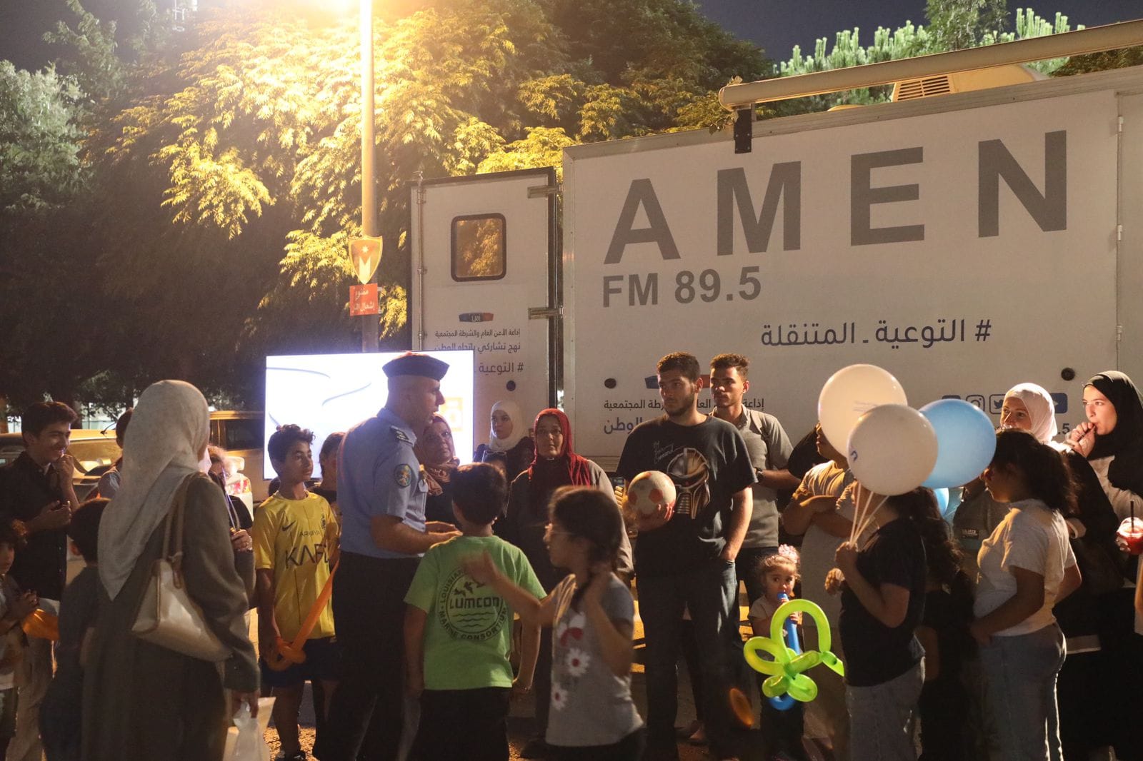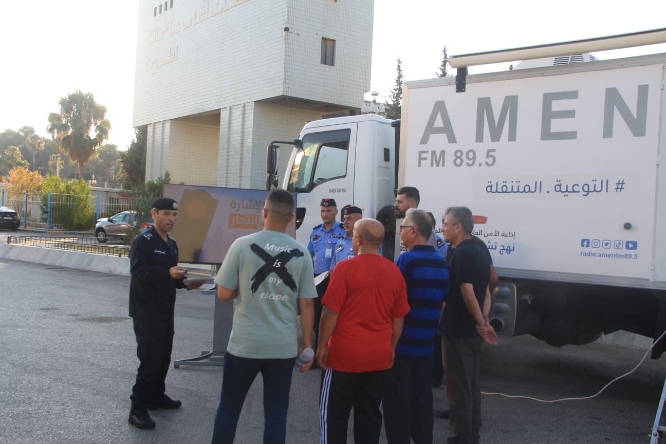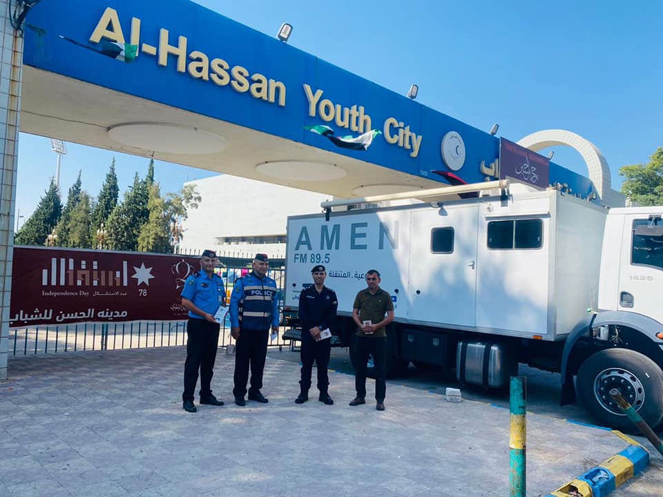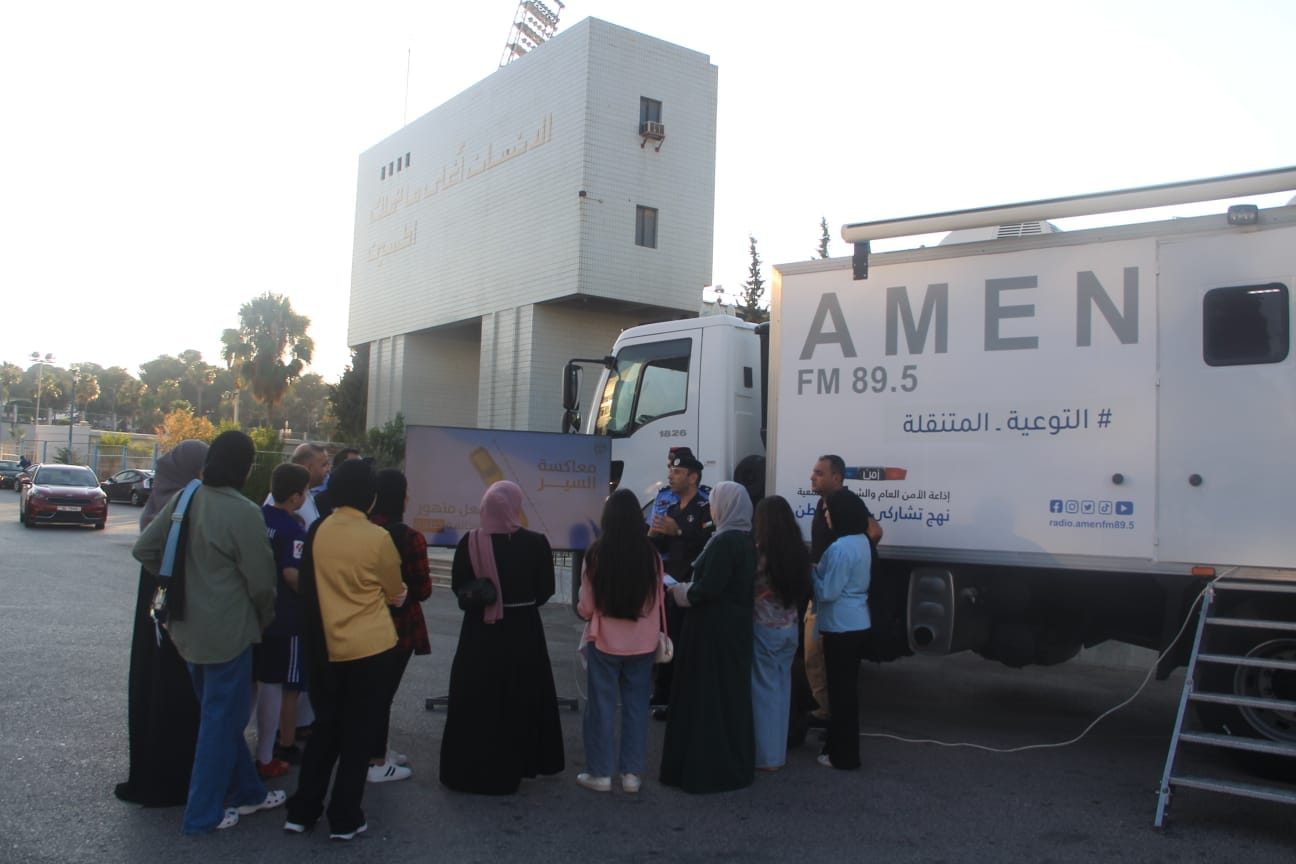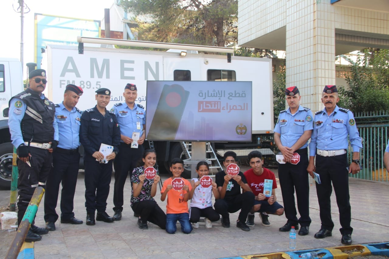 "محطة التوعية المتنقلة، التابعة لمديرية الإعلام والشرطة المجتمعية تواصل مشوارها على طرقات المملكة، واليوم وصلنا بفضل الله إلى إربد لنلتقي الأهل والعزوة ونكمل حملتنا الإعلامية للتوعية المرورية التي بدأناها في عمان وسنعبر بها محافظات الوطن لنصل كلنا معا بإذن الله آمنين".