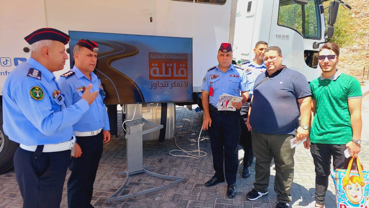 واصلت محطة التوعية المتنقلة التابعة لمديرية الاعلام والشرطة المجتمعية عملها، إذ حطت رحالها اليوم في عجلون، لنشر التوعية المرورية والبيئية.