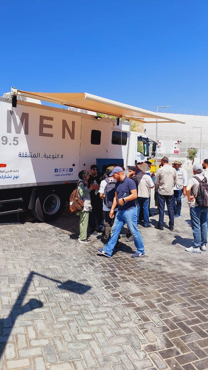 "محطة التوعية المتنقلة، التابعة لمديرية الإعلام والشرطة المجتمعية تواصل مشوارها على طرقات المملكة، وفي مناطق التجمعات، وبين الأهل والعزوة والأحباب".