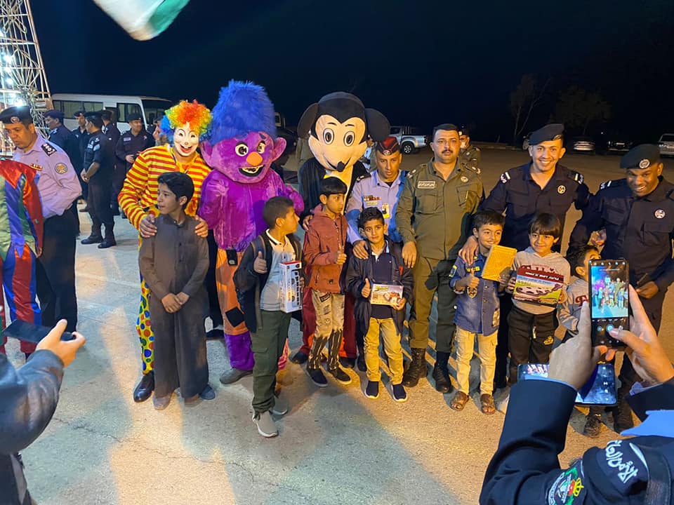 كما وزع مدير شرطة البادية الوسطى العقيـد جمال الجازي الهدايا على الأطفال المشاركين