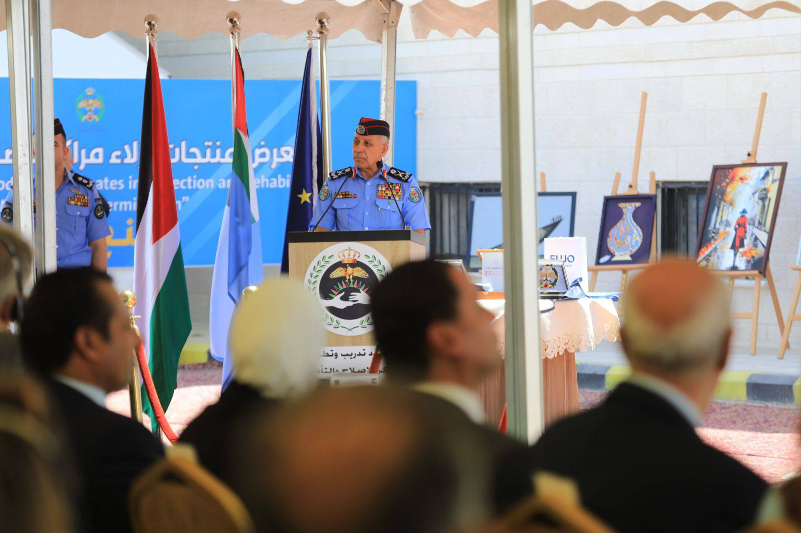 ورعى الاحتفال مدير الأمن العام، اللواء الدكتور عبيدالله المعايطة، وبحضور سفير الاتحاد الأوروبي في الأردن، بيير كريستوف، ومدير مكتب التعاون الدولي الألماني (GIZ)، الدكتور لورنز بيترسن، ومدير مراكز الإصلاح والتأهيل العميد فلاح المجالي