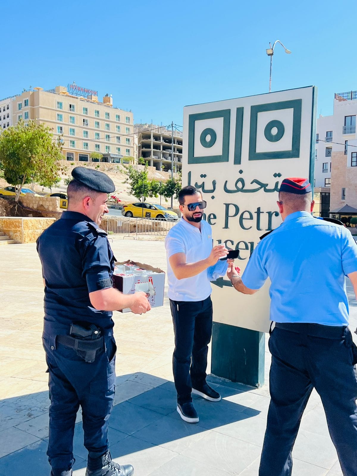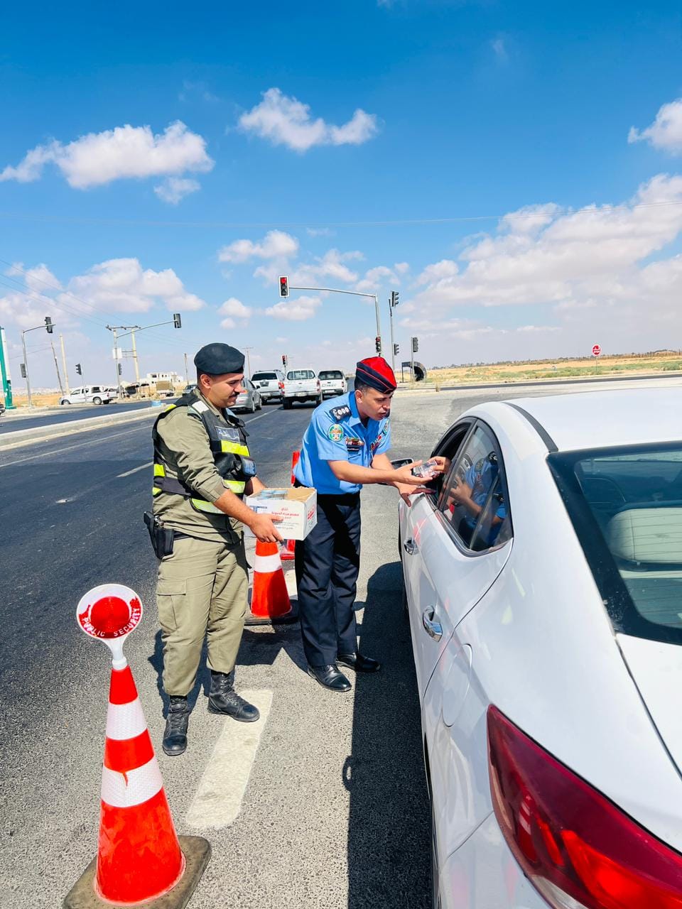 ووزعت الدوريات الميدانية عبوات الماء للتخفيف على السائقين خاصة مع ارتفاع درجات الحرارة، وتضمنت العديد من هذه العبوات نصائح إرشادية على الغطاء الخارجي، كما وزعت الفرق البروشورات التوعوية والتي تضمنت نصائح وإرشادات مرورية.