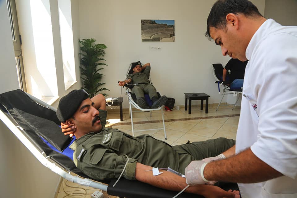 نظمت مديرية الأمن العام بالتعاون مع مديرية الخدمات الطبية اليوم حملة للتبرع بالدم تحت عنوان " رصيد " ويأتي تنفيذ هذه الحملة ضمن سلسلة الحملات الدورية الخاصة بالتبرع بالدم والتي تحرص مديرية الأمن العام على تنفيذها باستمرار بالتعاون مع الخدمات الطبية الملكية، ووزارة الصحة، انطلاقاً من دورها الإنساني والاجتماعي في رفد مخزون بنوك الدم، ومد يد العون للمساعدة للمواطنين وتلبية احتياجاتهم.