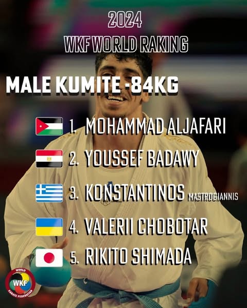 هنّأت مديرية الأمن العام لاعب المنتخب الوطني والأمن العام محمد الجعفري بتصدره التصنيف العالمي في رياضة الكراتيه بوزن تحت (84)كغم .