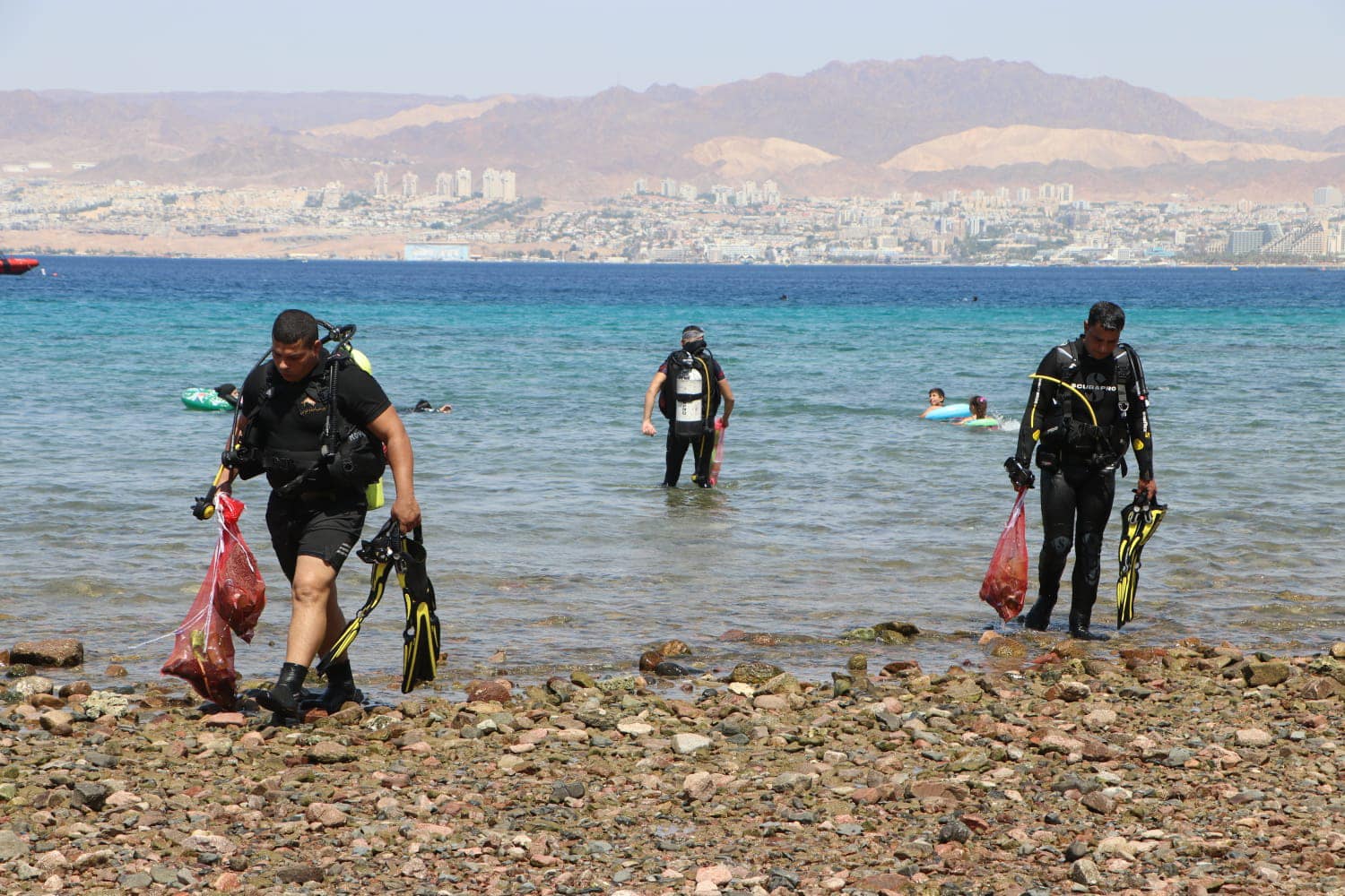 ونفذ غطاسو الدفاع المدني والقوة البحرية والزوارق الملكية، جولة لتنظيف جوف البحر ، كما شاركت كوادر الإدارة الملكية لحماية البيئة ومديرية شرطة العقبة الى جانب العديد من الجهات الخاصة والحكومية في حملة النظافة التي شملت شاطئ البحر ، وتم خلالها توزيع بروشورات توعوية تحث المواطنين وزوار المدينة على الالتزام بالتعليمات البيئية.