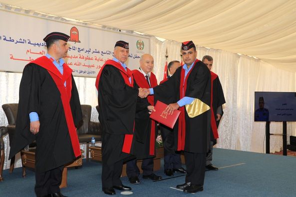 رعى مدير الأمن العام، اللواء الدكتور عبيد الله المعايطة، اليوم الاثنين، حفل تخريج الفوج التاسع عشر لبرنامج الماجستير في أكاديمية الشرطة الملكية بالتعاون مع جامعة مؤتة، والذي يضم عدداً من التخصصات النوعية .