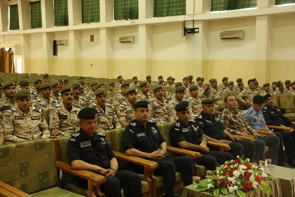 جانب من زيارة مساعد مدير الأمن العام للعمليات والتدريب العميد أيمن العوايشة لكلية العلوم الشرطية في جامعة مؤتة-الجناح العسكري ولقاءه تلاميذ الكلية