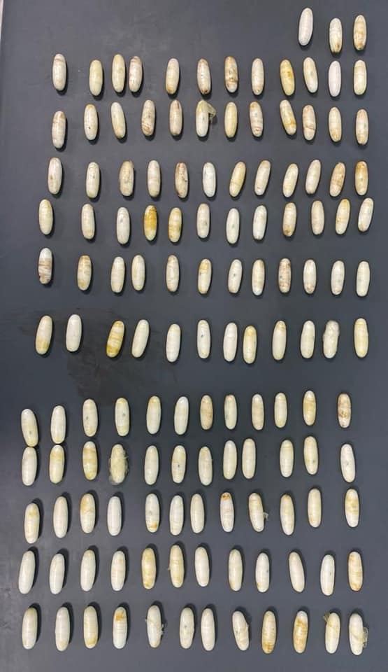 وبعد تفتيشهما والكشف عليهما بواسطة الاجهزة اللازمة اكتُشف وجود كميات من المواد المخدرة داخل أحشائهما ، وجرى إخراج هذه المواد بالطرق الطبية، وقُدرت ب 2 كغم من مادة الكوكايين المخدرة .