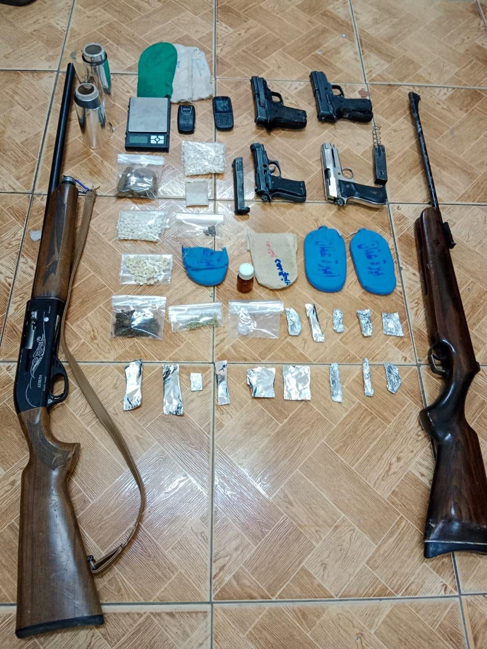 ضبط كميات كبيرة ومتفرقة من المخدرات وأسلحة نارية .