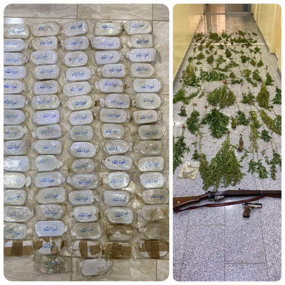 كما وقام فريق تحقيق من الإدارة بمتابعة معلومات حول قيام مجهولين بإخفاء كميات كبيرة من المخدرات في منطقة صحراوية خالية من السكان في منطقة الرويشد وتحرك الفريق للمكان وبتمشيطه عثر على 77 كف حشيش والتحقيق جارٍ لتحديد المتورطين.