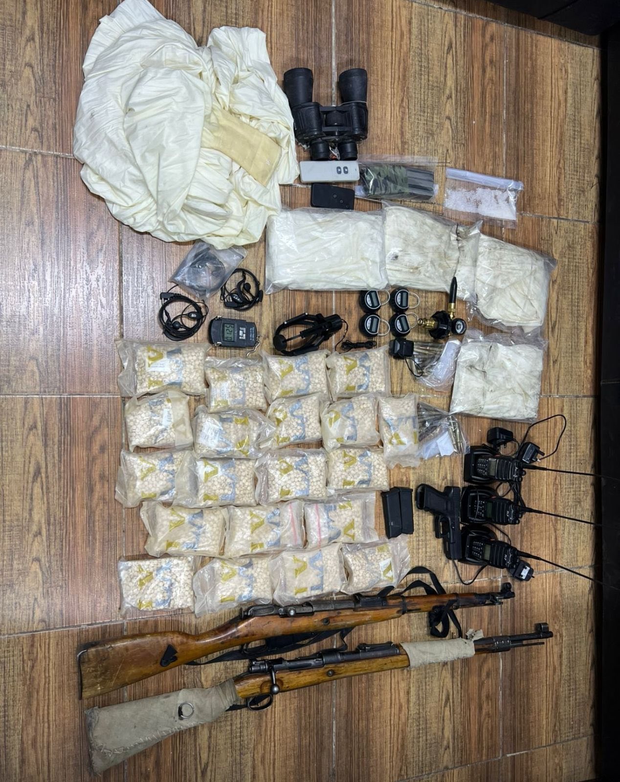 وأكّد الناطق الإعلامي أنّه بعد عمليات رصد ومتابعة ومراقبة لأولئك الأشخاص تم تحديد مواقع وجودهم ونشاطهم الجرمي في إحدى المناطق الحدودية الجنوبية وجرت مداهمتهم وإلقاء القبض عليهم وضبط بحوزتهم عدد من البالونات الموجهة إضافة إلى 20 ألف حبة مخدرة وثلاثة أسلحة نارية .