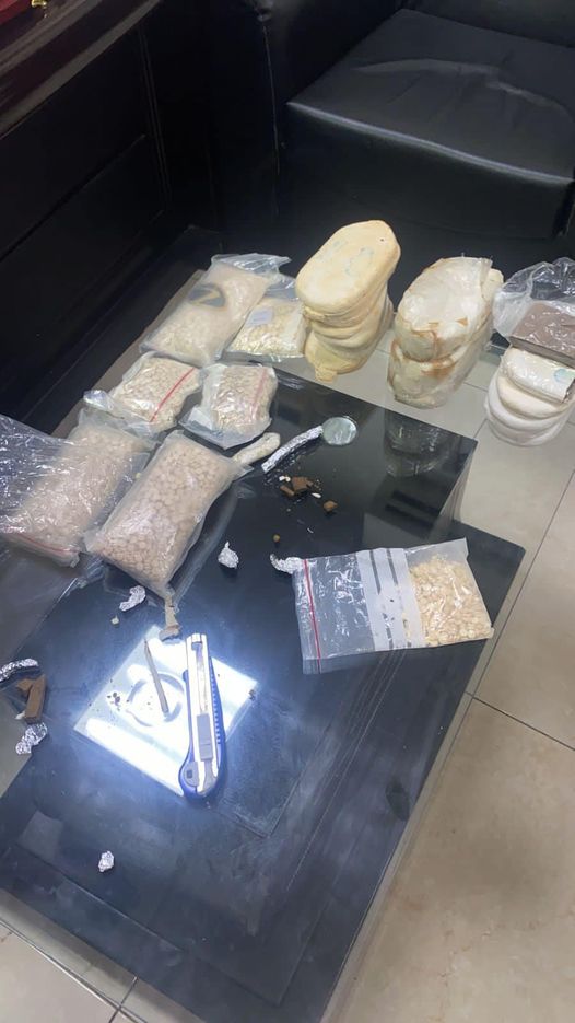 فيما أُلقي القبض في القضية الثانية بلواء الرمثا، على شخصين من مروجي وتجار المواد المخدرة وضُبطت بحوزتهما كميات من المواد المخدرة المختلفة المُعدة للبيع وسلاح ناري.