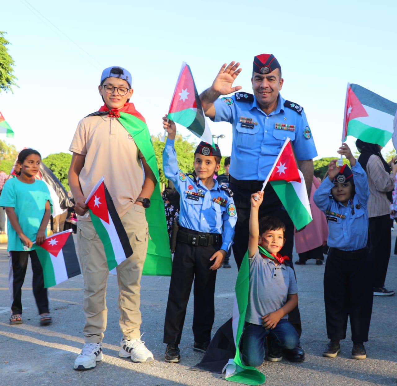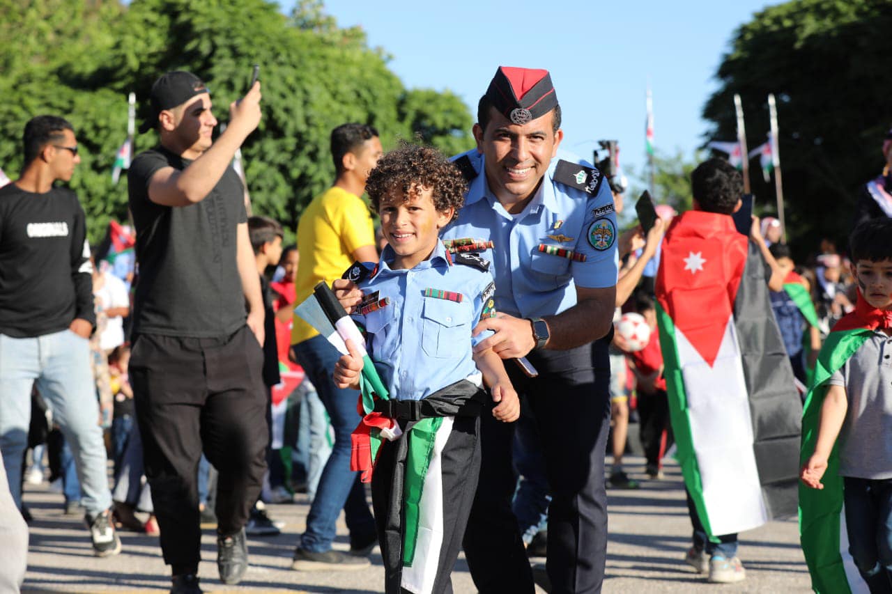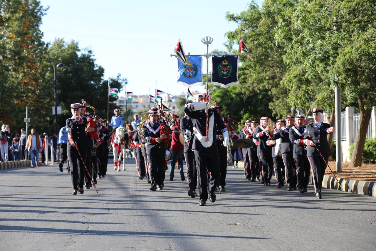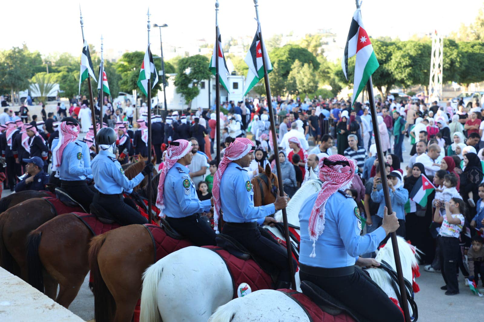 ورسمت موسيقات الأمن العام وفرسانها ومعهم الاف المواطنين اجمل لوحات الفخر والاعتزاز، معبرين عن حبهم وانتمائهم الكبير والراسخ للوطن وقيادته الهاشمية بهذه المناسبة.