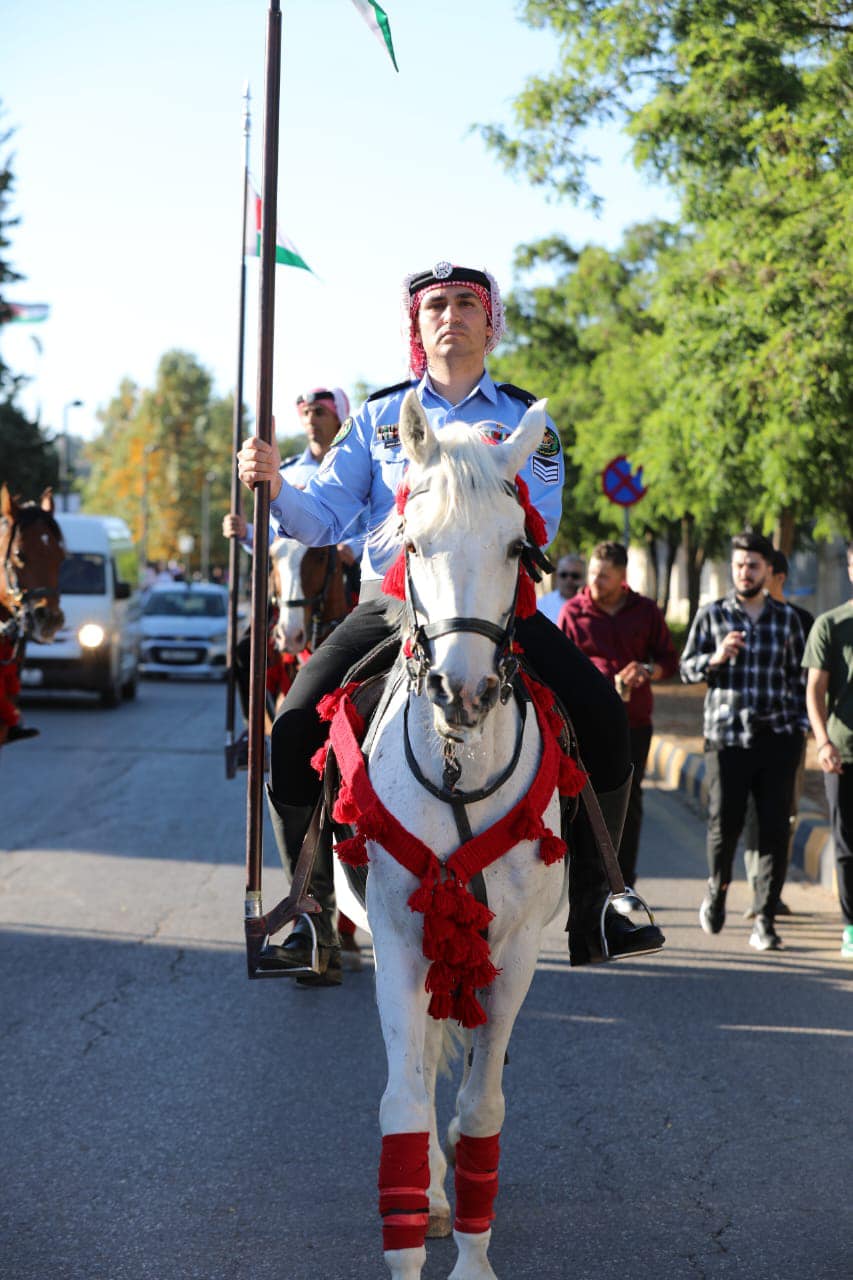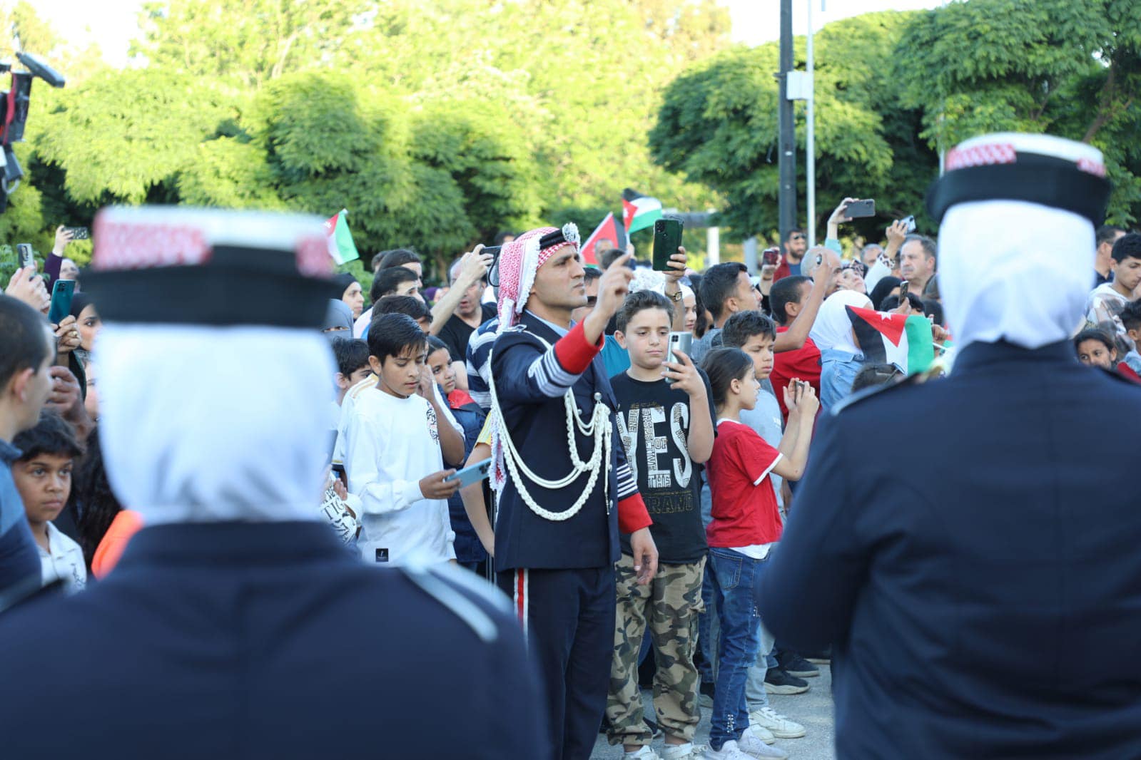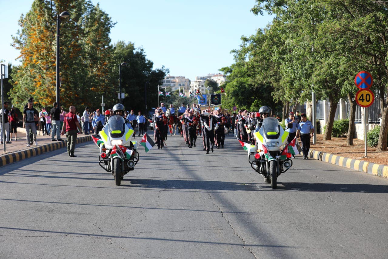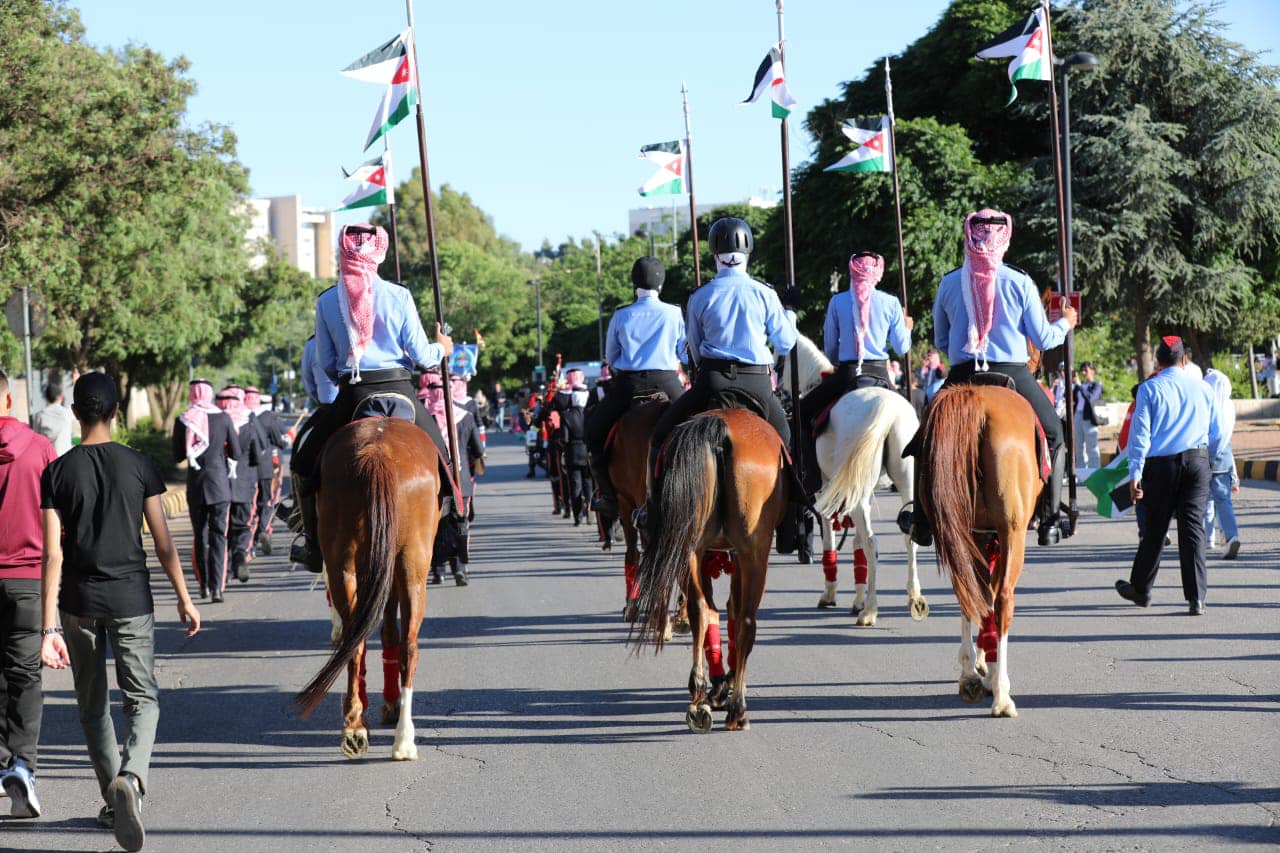 ورسمت موسيقات الأمن العام وفرسانها ومعهم الاف المواطنين اجمل لوحات الفخر والاعتزاز، معبرين عن حبهم وانتمائهم الكبير والراسخ للوطن وقيادته الهاشمية بهذه المناسبة.