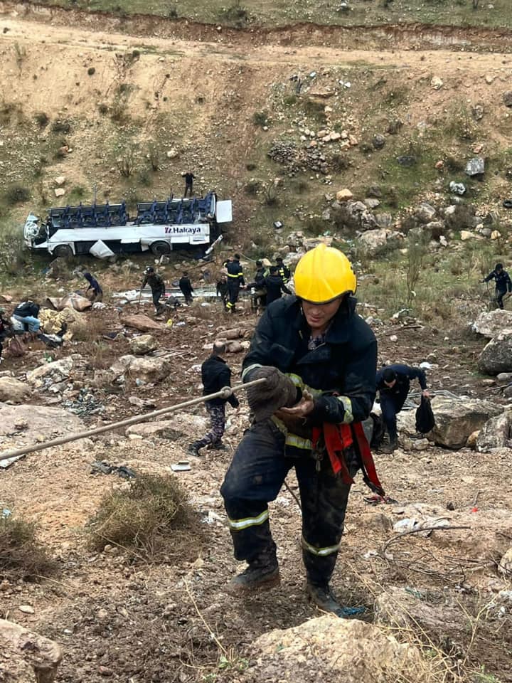 **كوادر الدفاع المدني عملت على إخلاء الوفيات ونقل الإصابات إلى المستشفيات لتلقي العلاج.