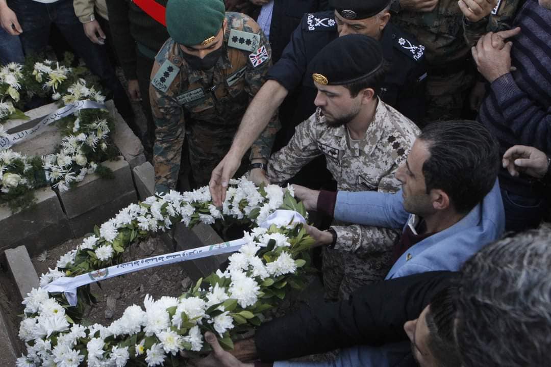شارك سمو الأمير الحسين بن عبدالله الثاني، ولي العهد، في تشييع شهيد الوطن والواجب، النقيب غيث قاسم الرحاحلة إلى مثواه الأخير في منطقة صويلح شمالي العاصمة عمان، والذي ارتقى شهيداً إلى جوار ربه بعد إصابته برصاص الغدر أثناء تنفيذ مداهمة لخلية إرهابية في منطقة الحسينية بمحافظة معان.