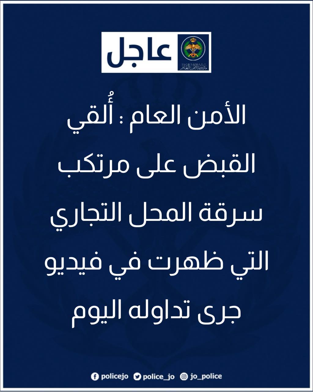 الأمن العام : أُلقي القبض على مرتكب سرقة المحل التجاري التي ظهرت في فيديو جرى تداوله اليوم