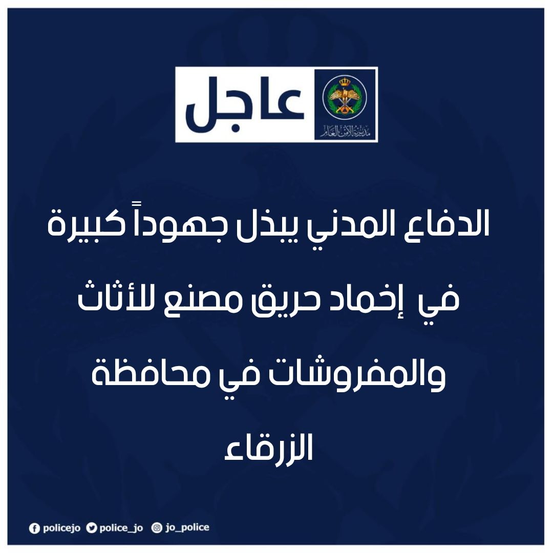 قال الناطق الاعلامي باسم مديرية الأمن العام أن فرق الاطفاء المتخصصة في مديرية دفاع مدني الزرقاء