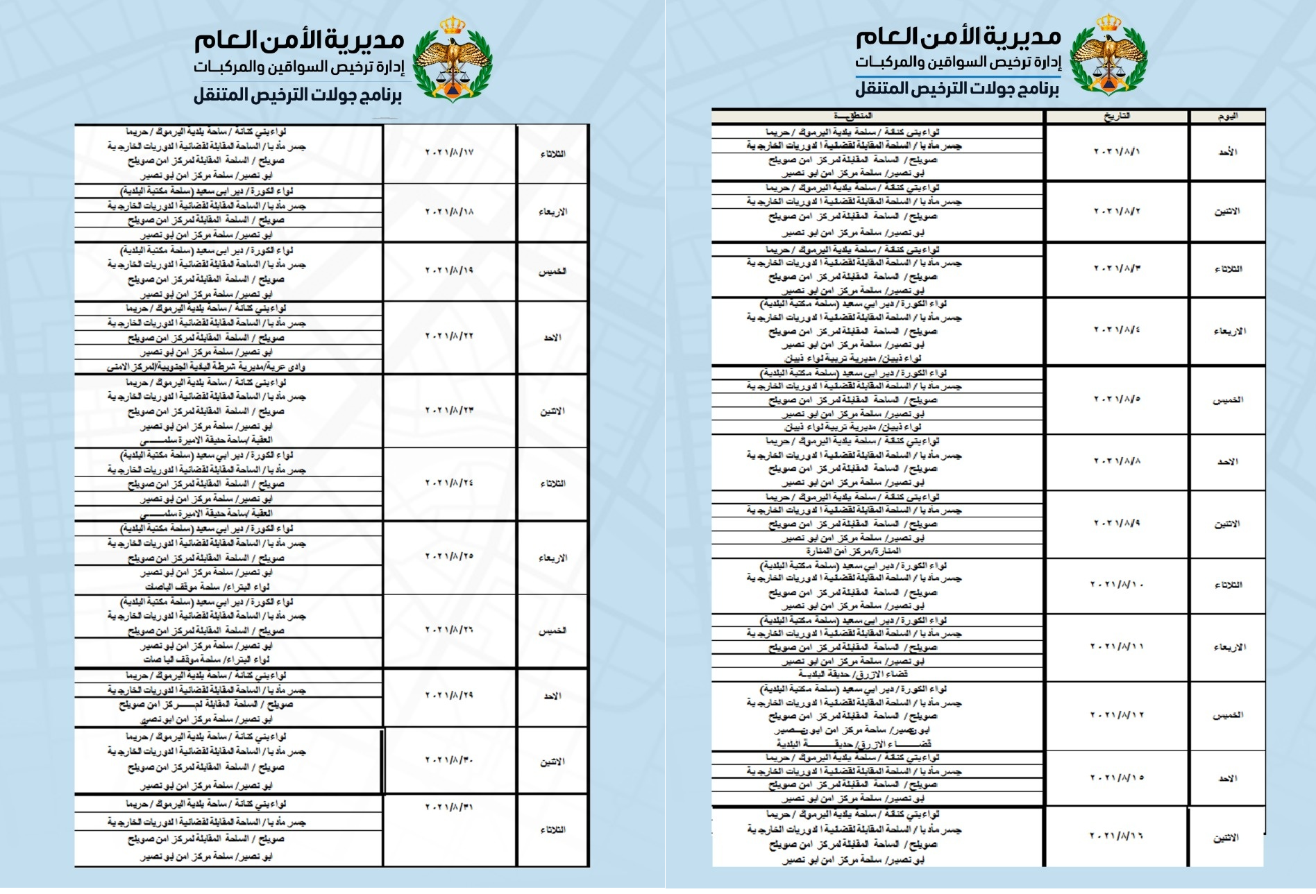 ادارة ترخيص السواقين و المركبات تعلن عن مواعيد العمل بجولات الترخيص المتنقل