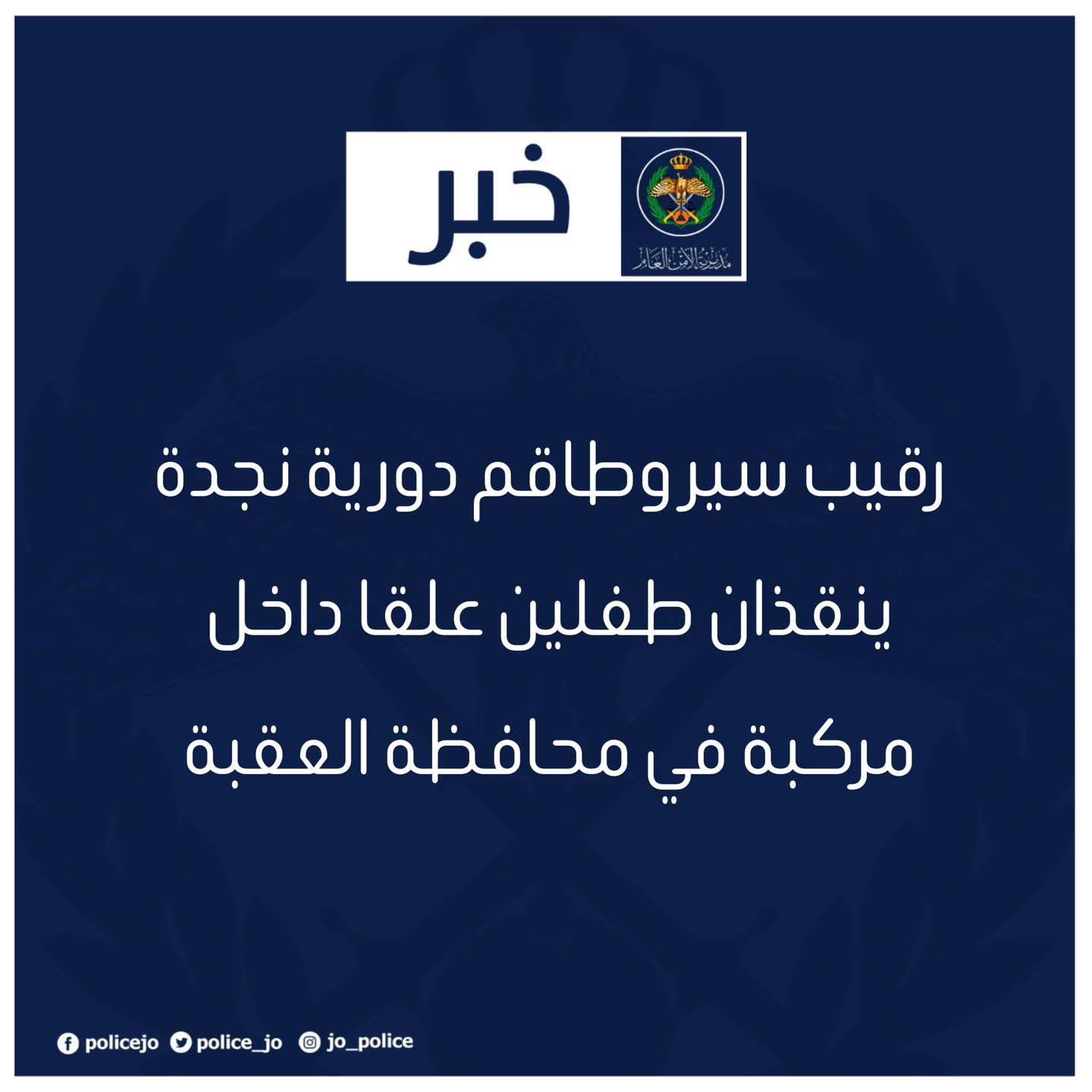 رقيب سير وطاقم دورية نجدة ينقذان طفلين علقا داخل مركبة في محافظة العقبة
