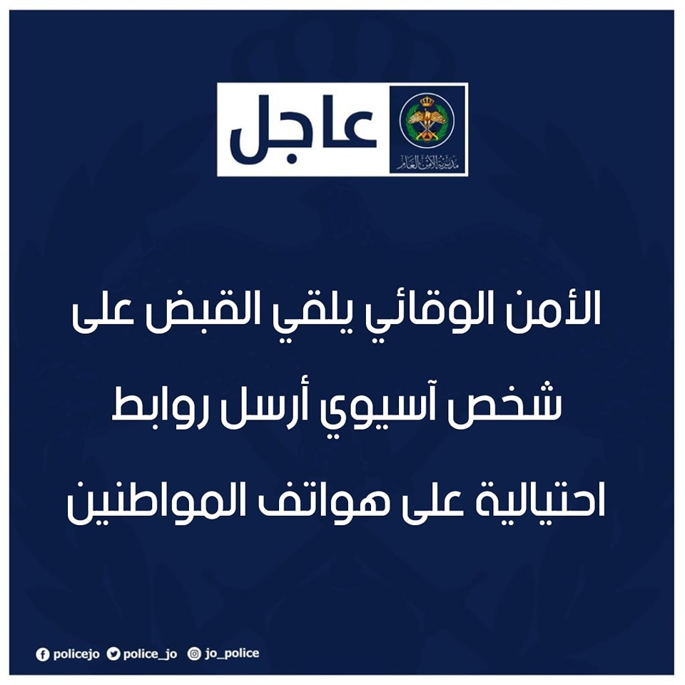 قال الناطق الإعلامي باسم مديرية الأمن العام إنّه على إثر مجموعة الرسائل الوهمية التي وصلت على هواتف المواطنين أمس