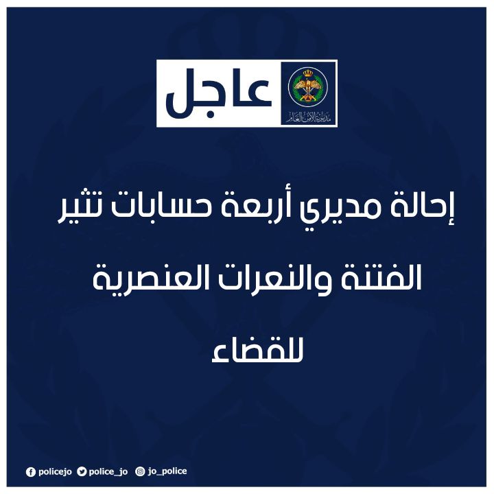الأمن العام : إحالة مديري أربعة حسابات تُثير الفتنة والنّعرات العنصرية للقضاء