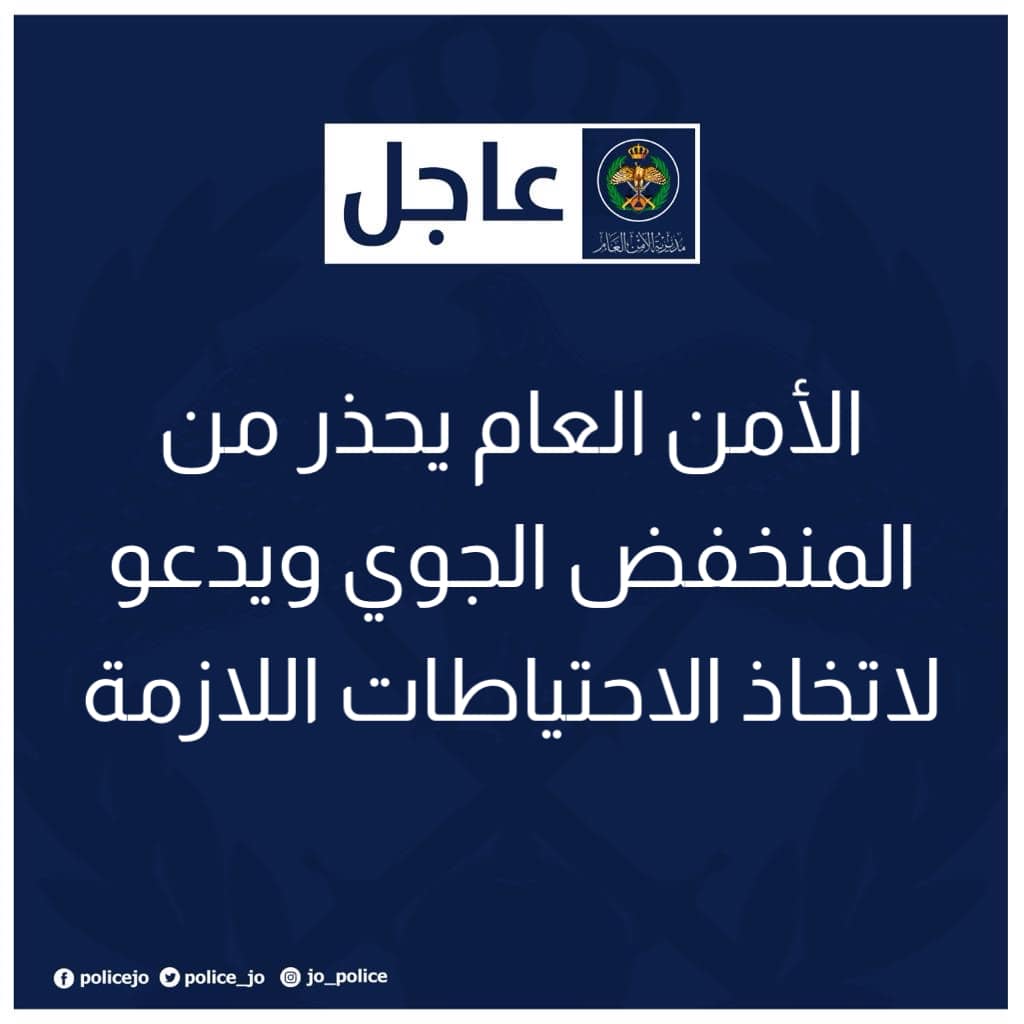 حذرت مديرية الأمن العام من التأثيرات المتوقعة للمنخفض الجوي الذي سيؤثر على المملكة اعتبارًا من مساء اليوم
