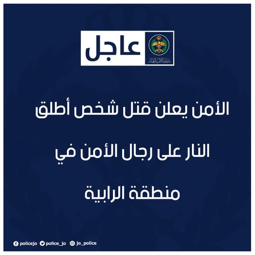 الأمن يعلن قتل شخص أطلق النار على رجال الأمن في منطقة الرابية