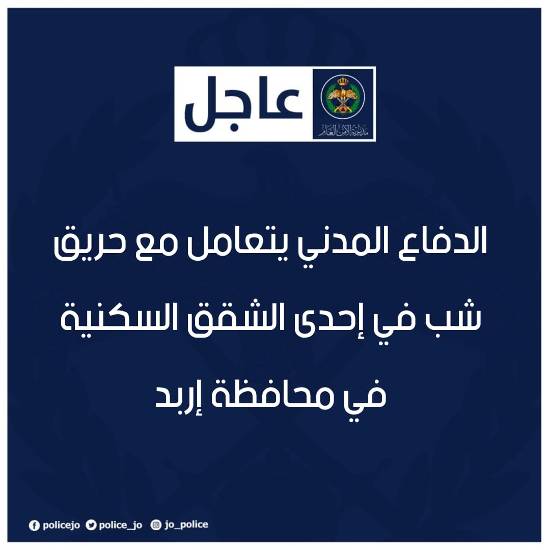 قال الناطق الإعلامي باسم مديرية الأمن العام أن طواقم الإطفاء المتخصصة والعاملة في مديرية دفاع مدني غرب إربد استجابت لبلاغ يفيد بوجود حريق داخل إحدى الشقق السكنية في منطقة الرابية بمحافظة إربد