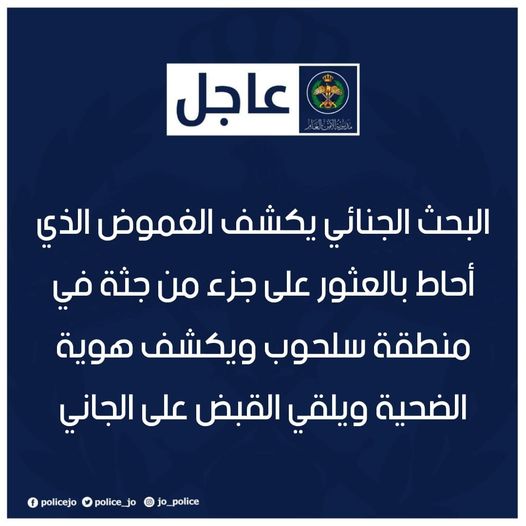 البحث الجنائي يكشف الغموض الذي أحاط بالعثور على جزء من جثة في منطقة سلحوب ويكشف هوية الضحية ويُلقي القبض على الجاني
