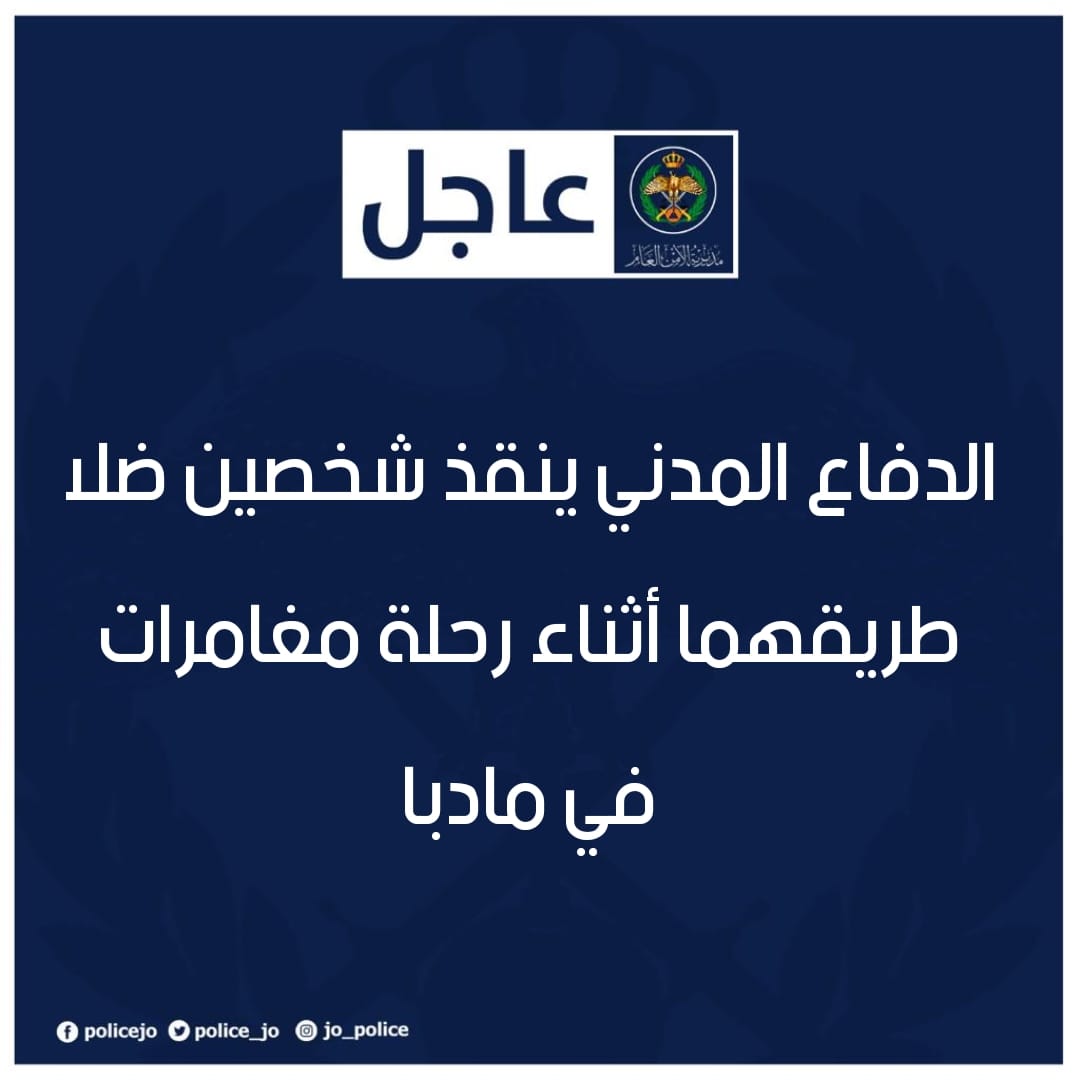 قال الناطق الإعلامي باسم مديرية الأمن العام أنَّ الفرق المتخصصة في دفاع مدني مادبا تساندها مديرية الشرطة تمكنت من العثور على شخصين ضلا الطريق
