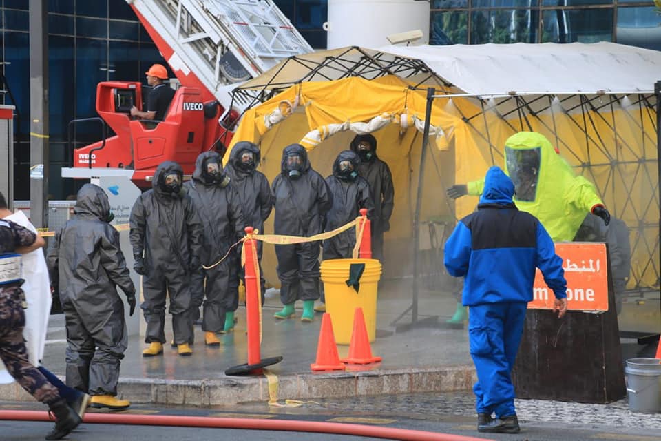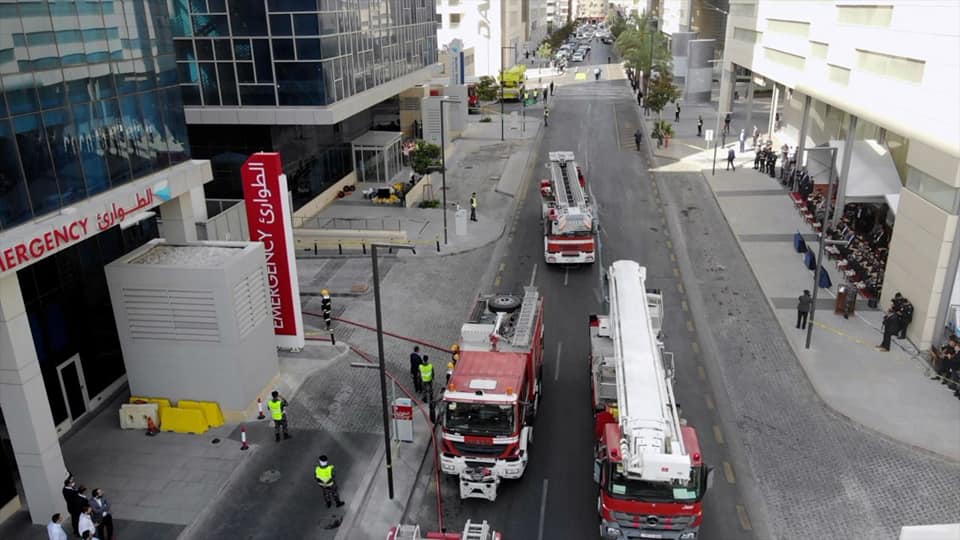 جانب من تنفيذ التمرين الوهمي الذي نفذه الدفاع المدني على مبنى مستشفى العبدلي 2022م