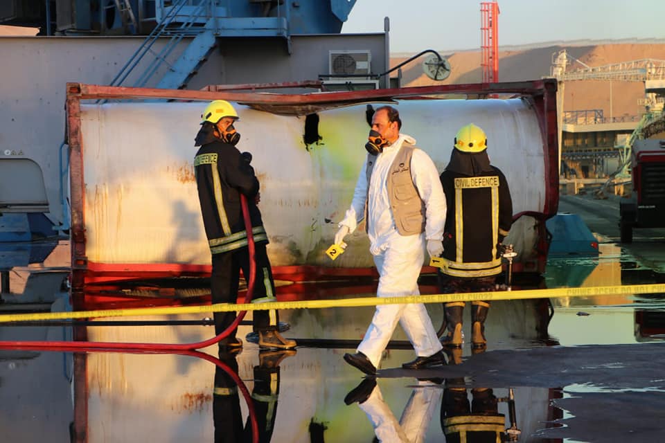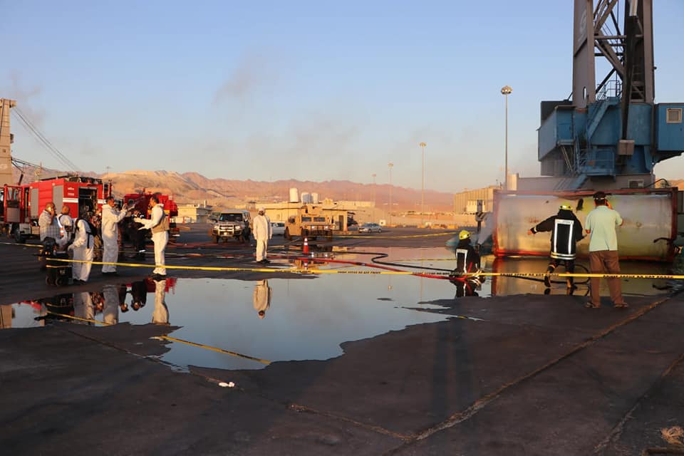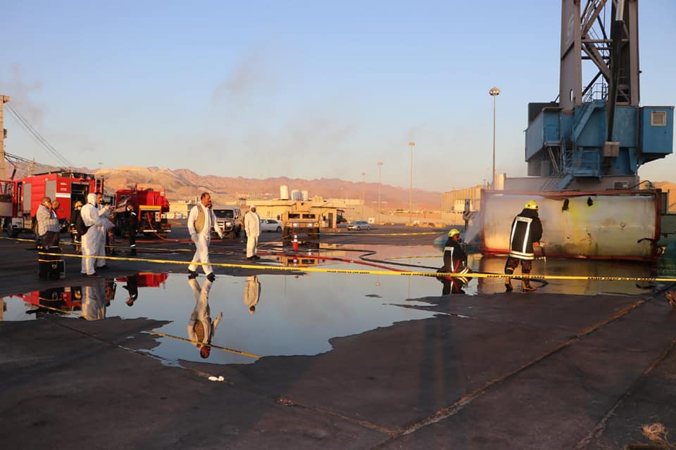 التعامل مع حادثة سقوط صهريج محمل بالغاز بالعقبة 27 /6 /2022م